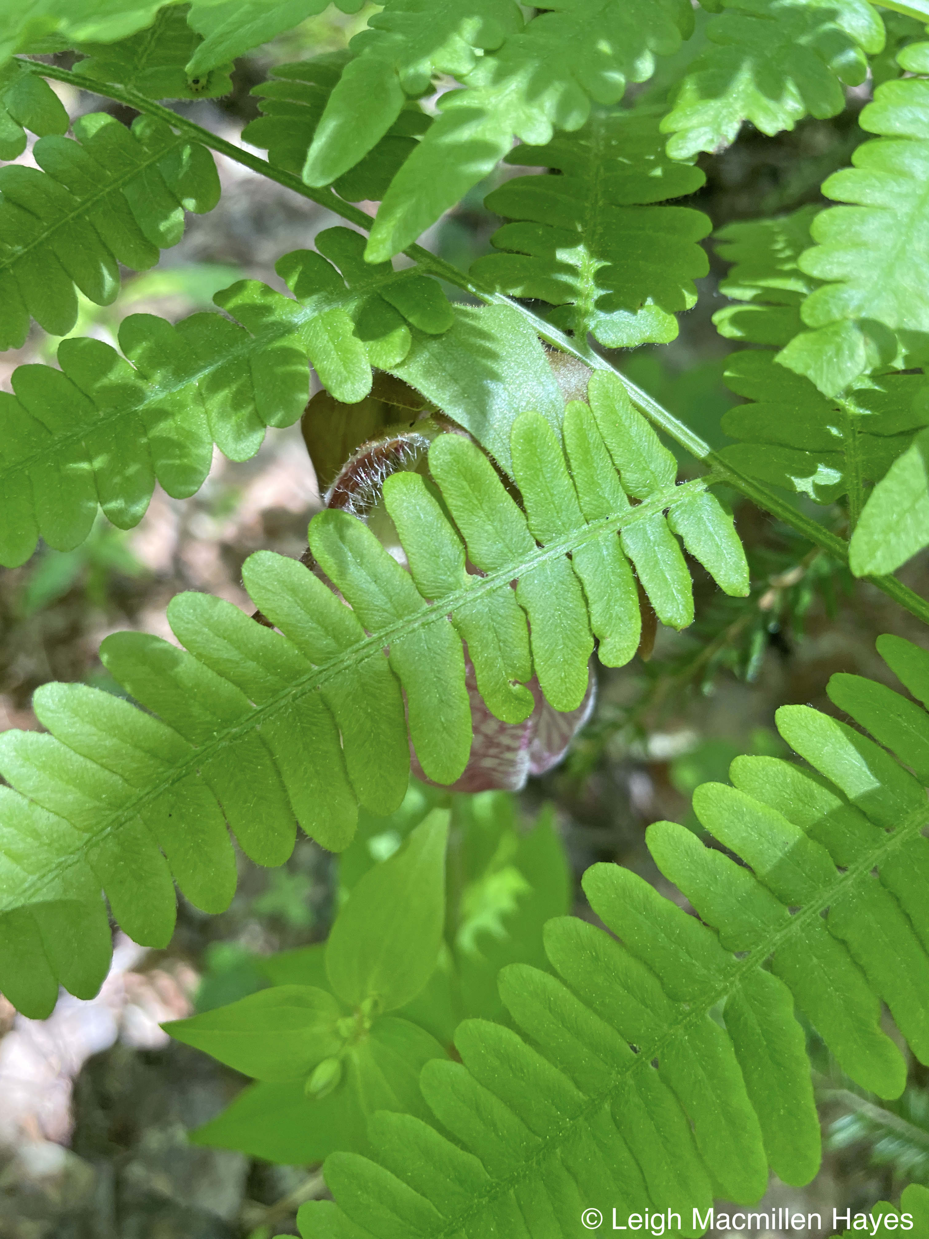 As did the almost ready to unfurl crosiers of Cinnamon Ferns. I love their woolly coats.