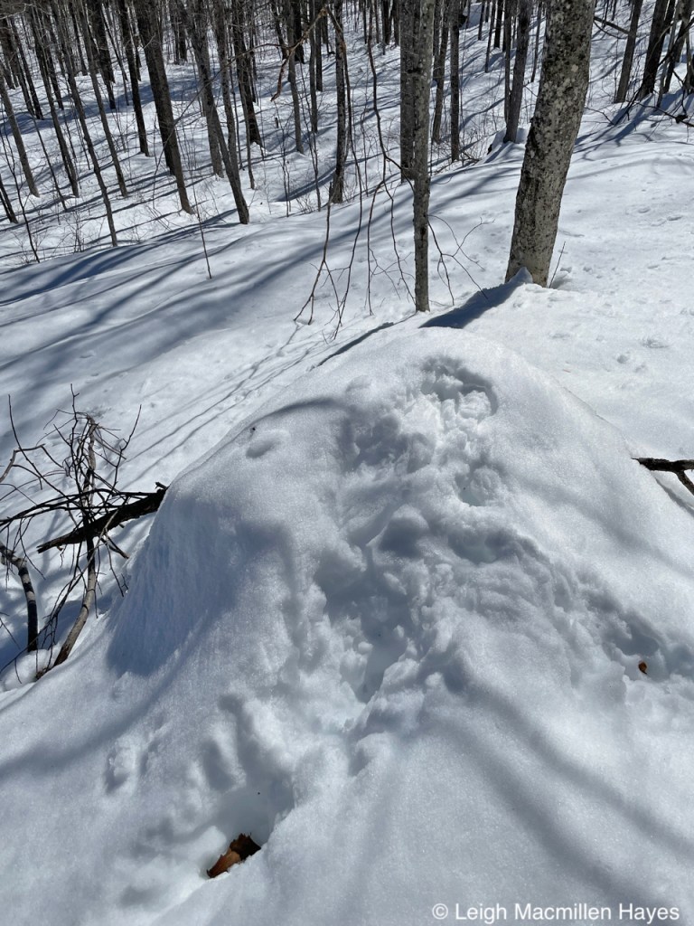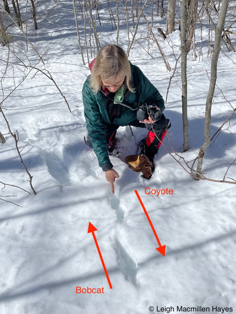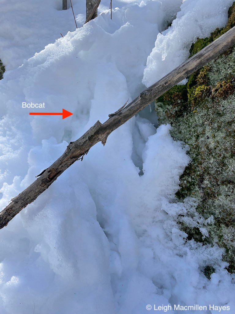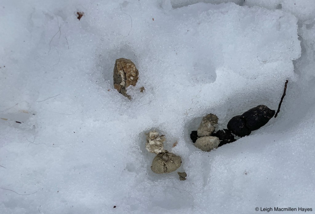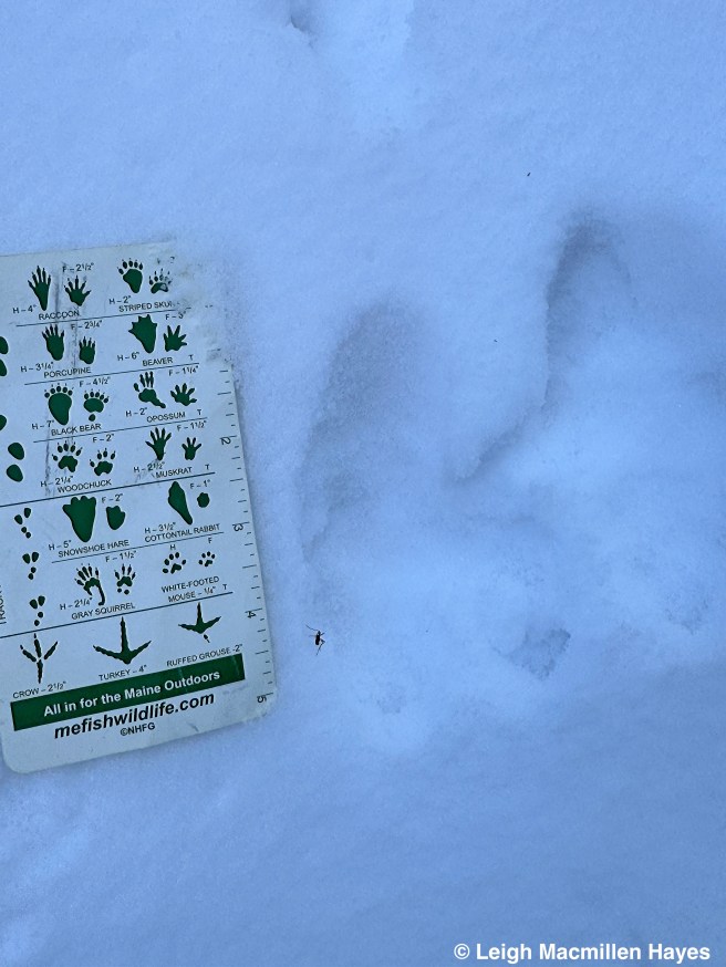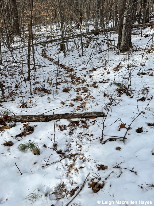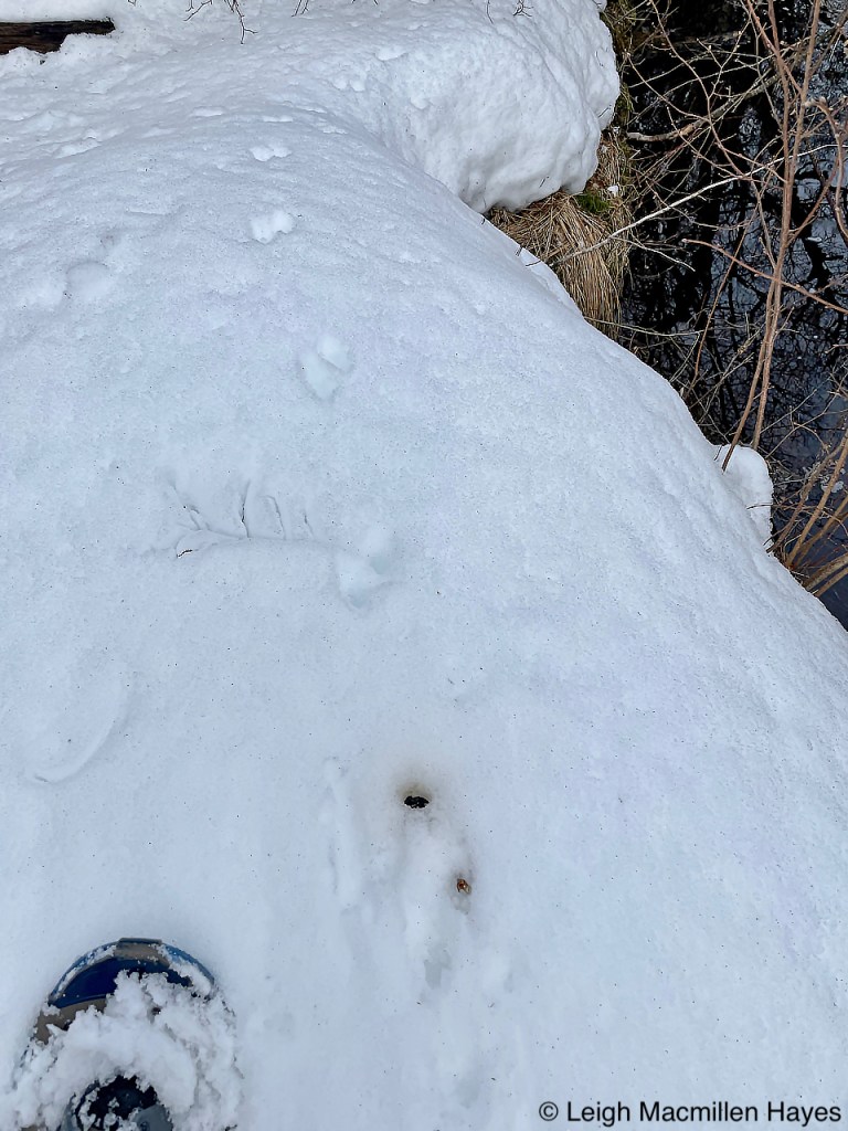 On the same downed tree, we spotted the squirrel’s track pattern and that of Juncos which flitted about in the trees as we passed by.