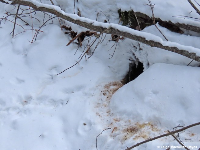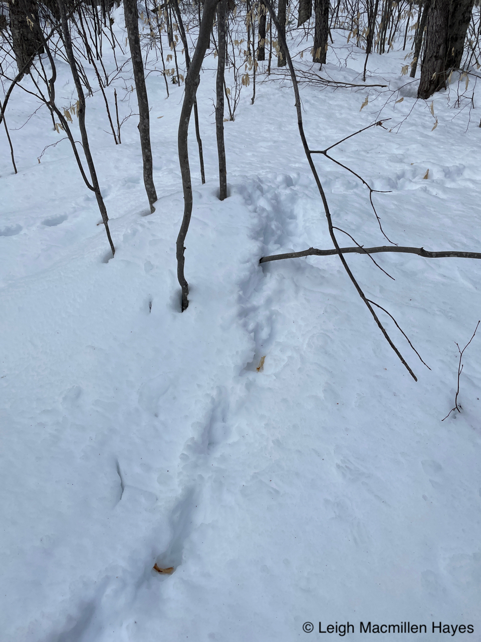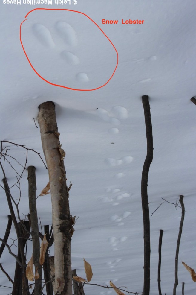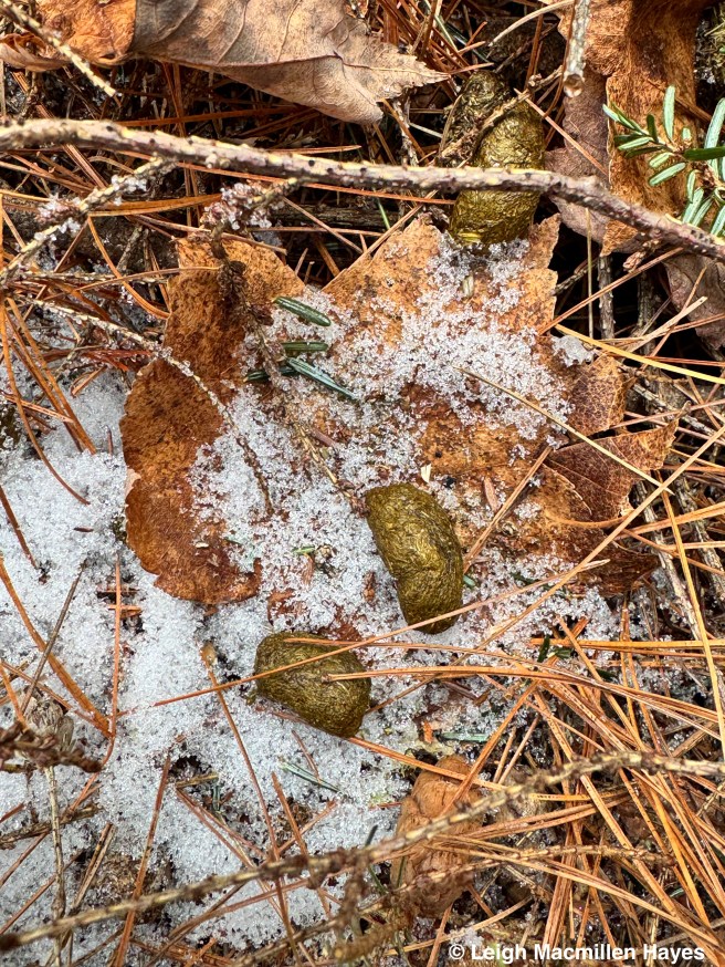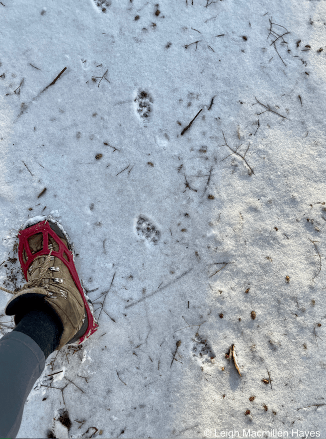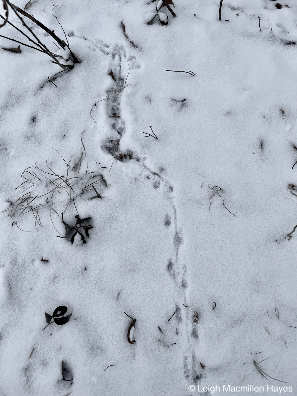 On the same downed tree, we spotted the squirrel’s track pattern and that of Juncos which flitted about in the trees as we passed by.