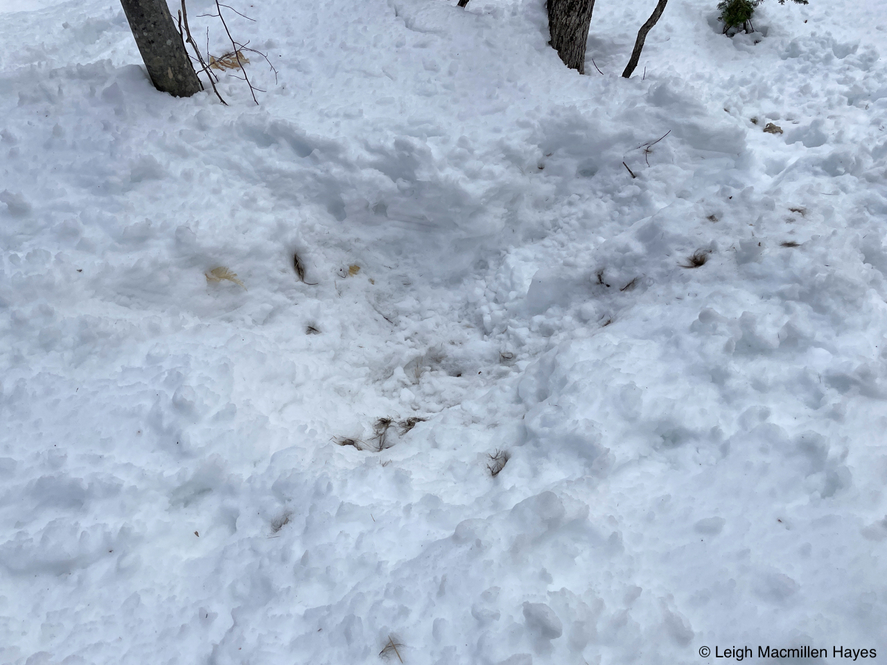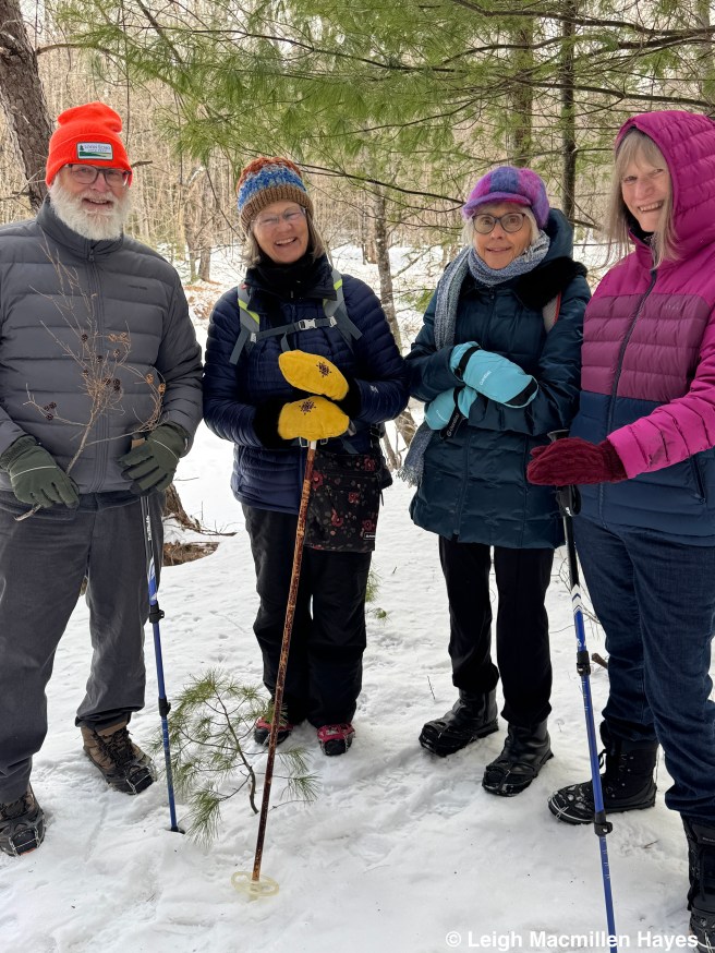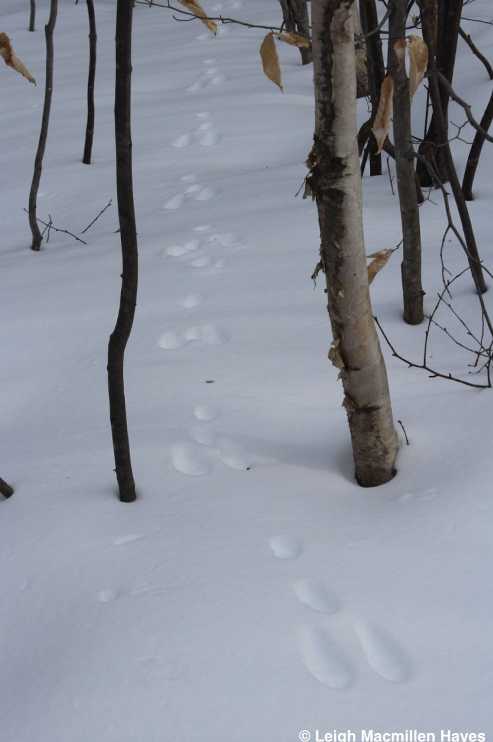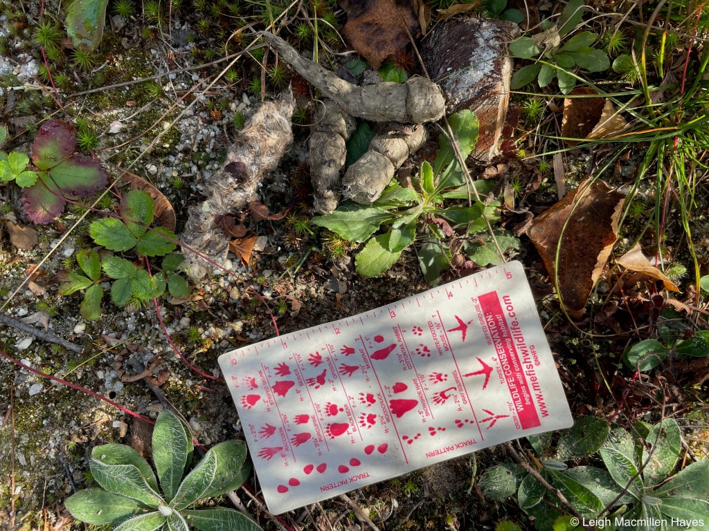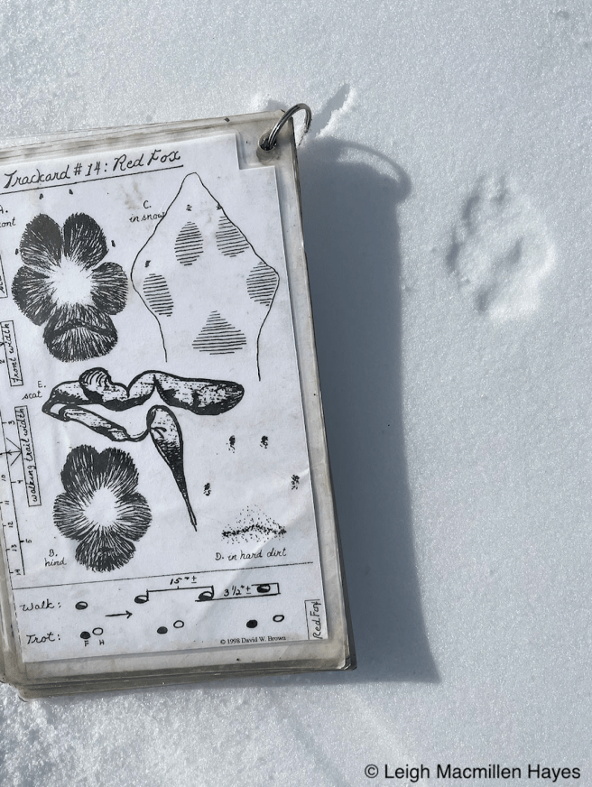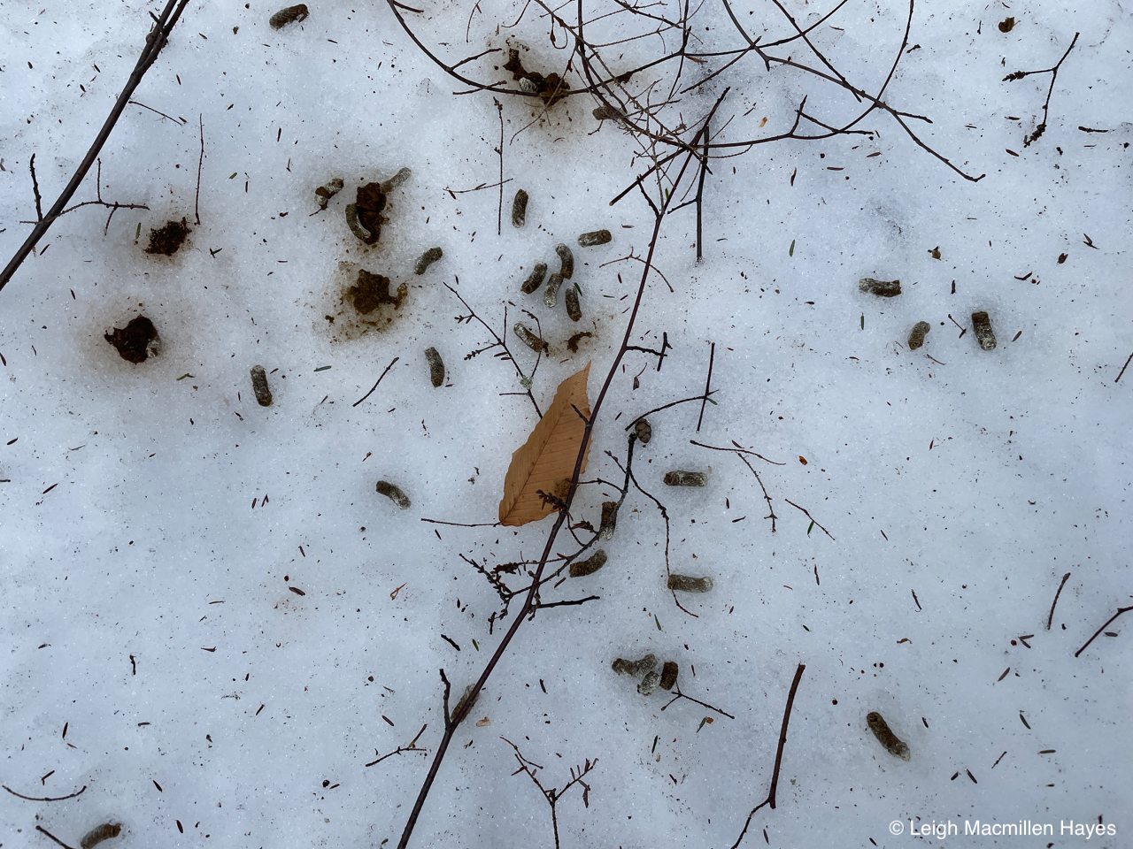 On the same downed tree, we spotted the squirrel’s track pattern and that of Juncos which flitted about in the trees as we passed by.
