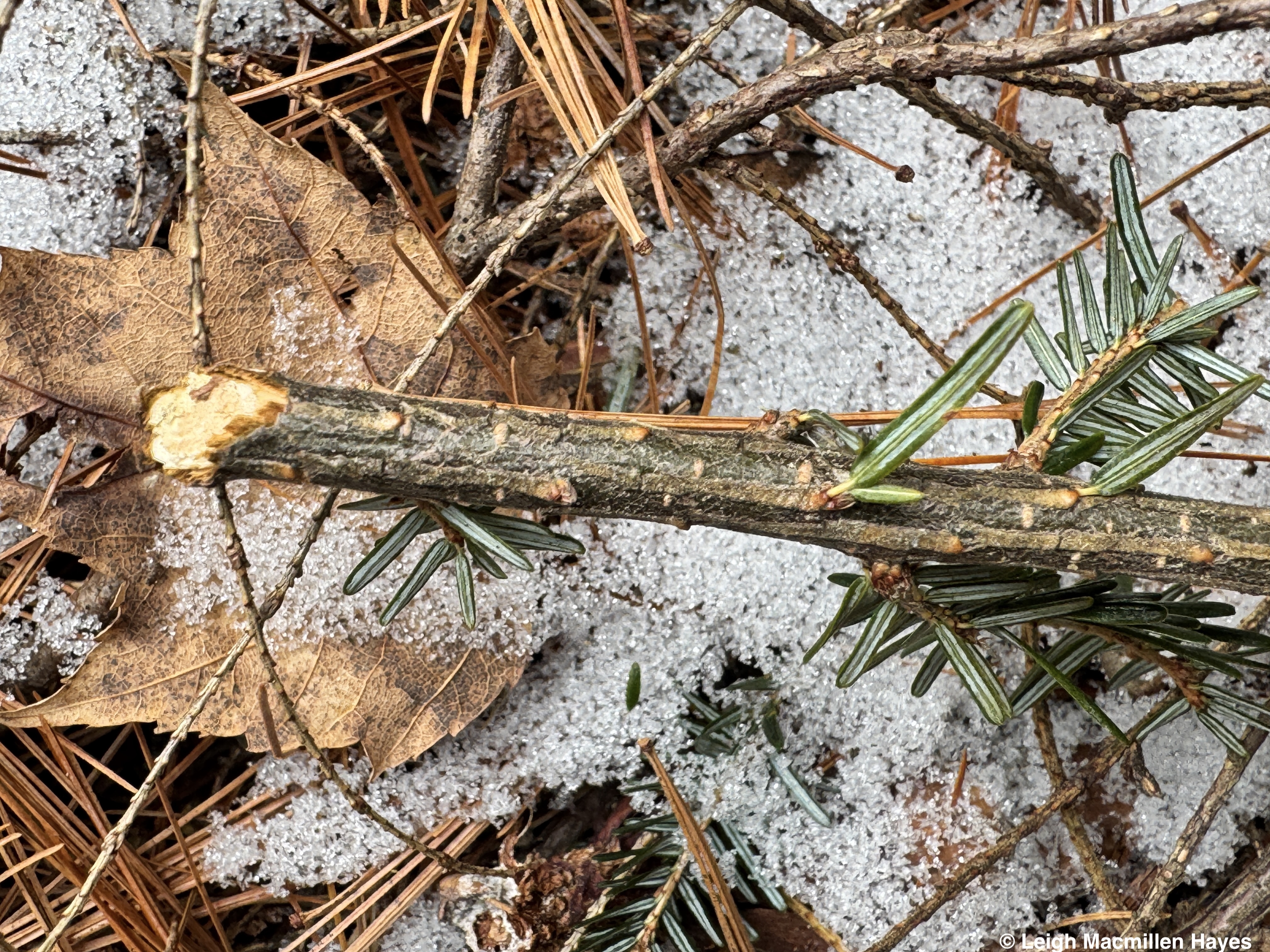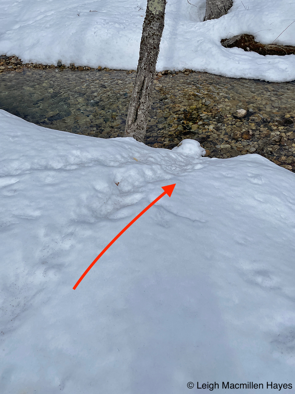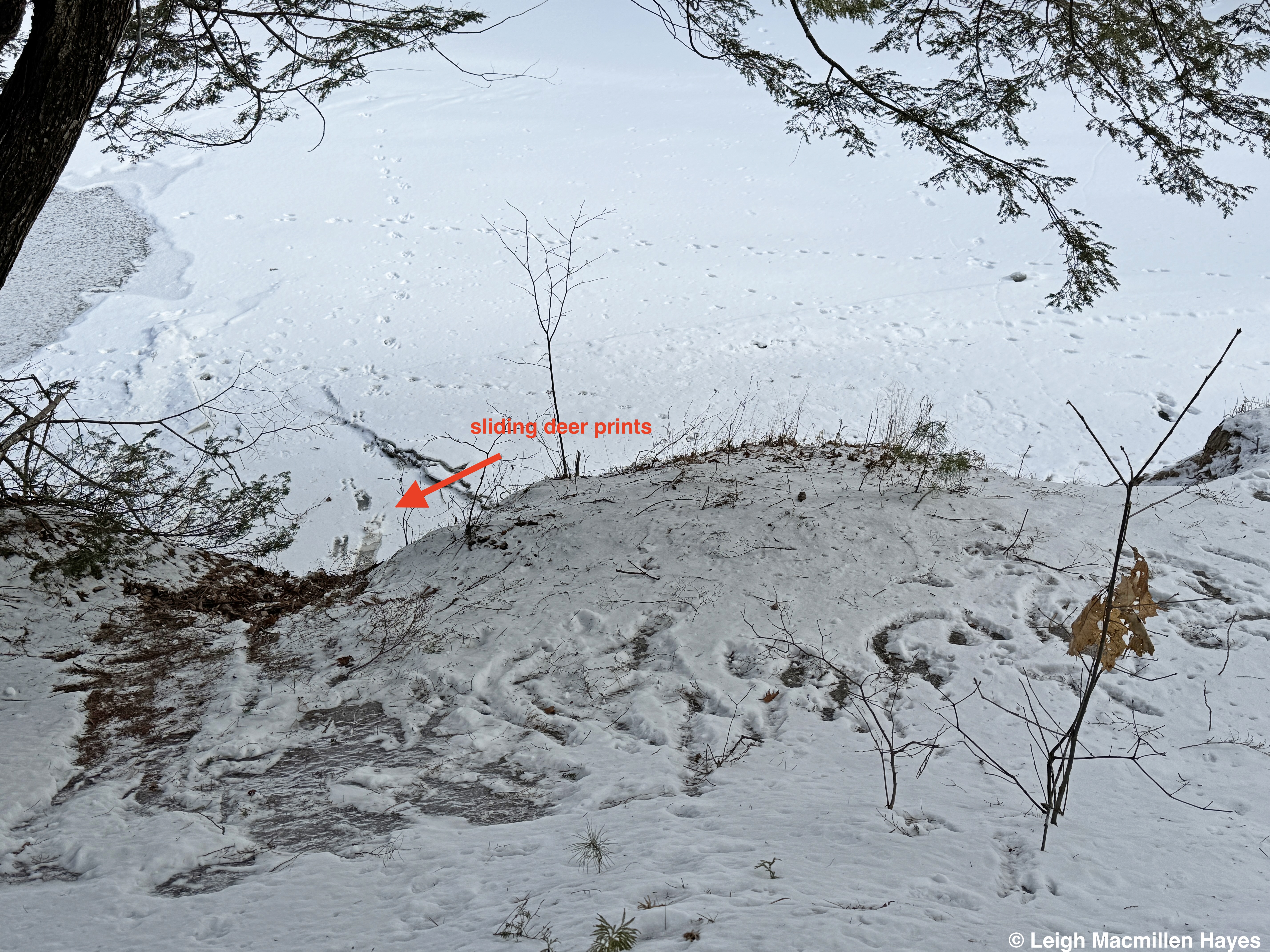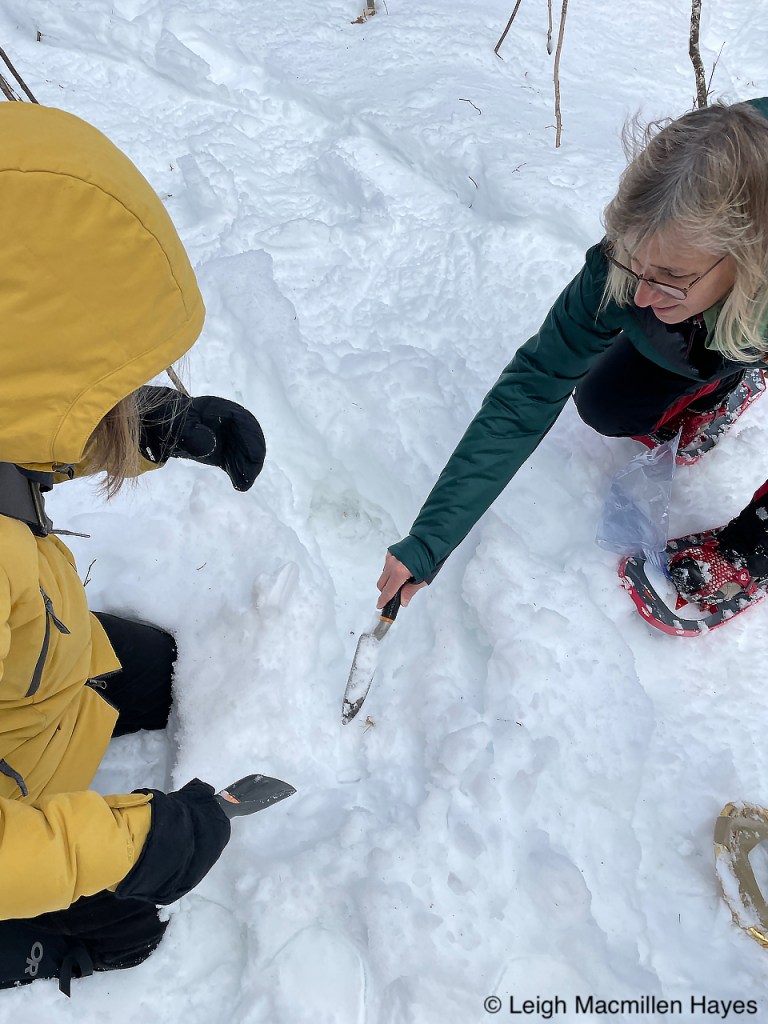 On the same downed tree, we spotted the squirrel’s track pattern and that of Juncos which flitted about in the trees as we passed by.