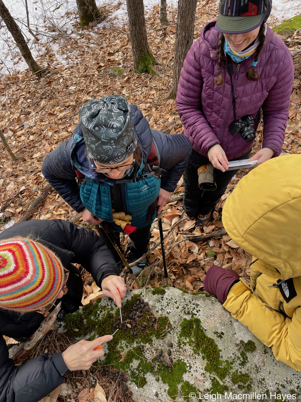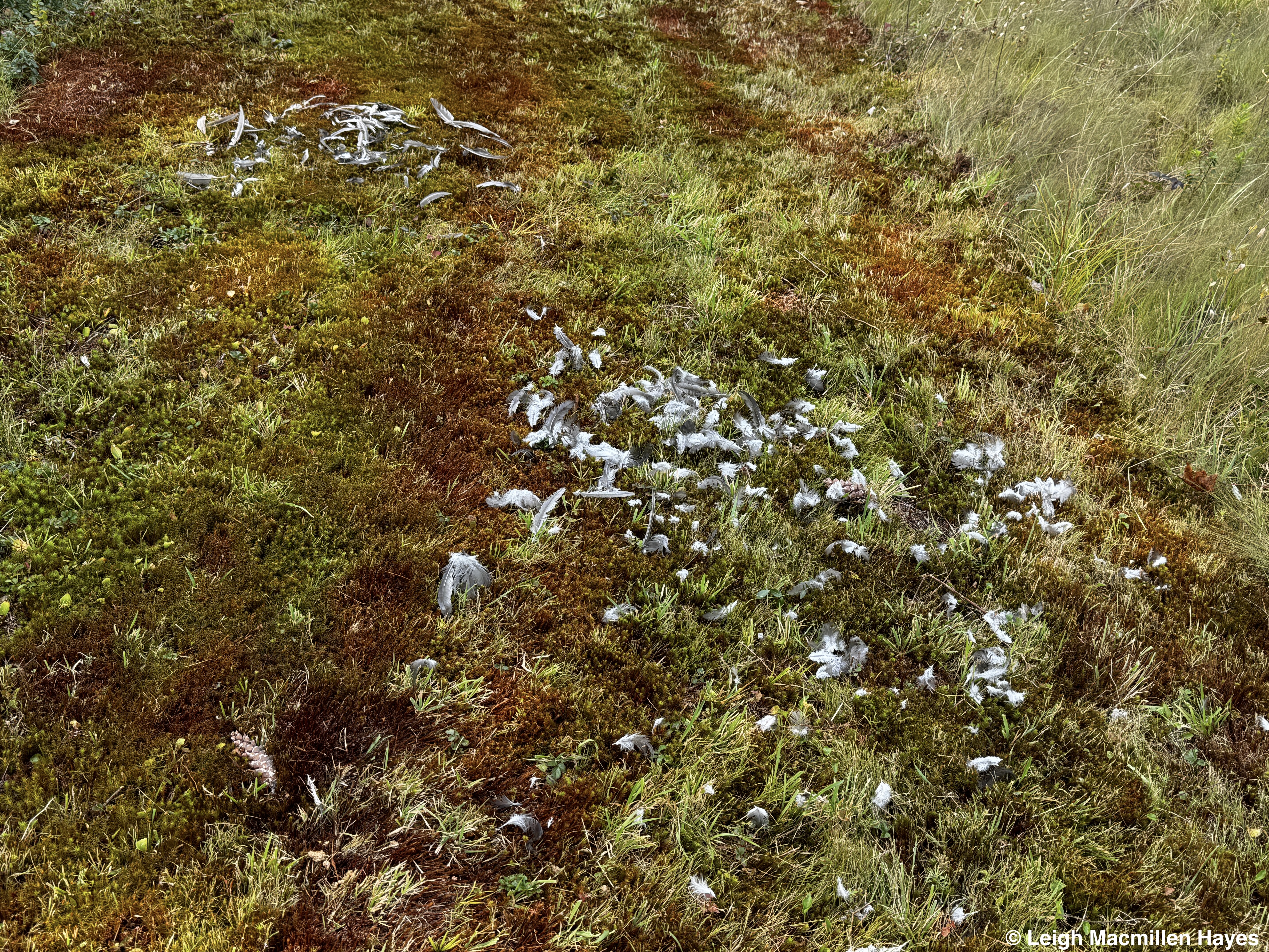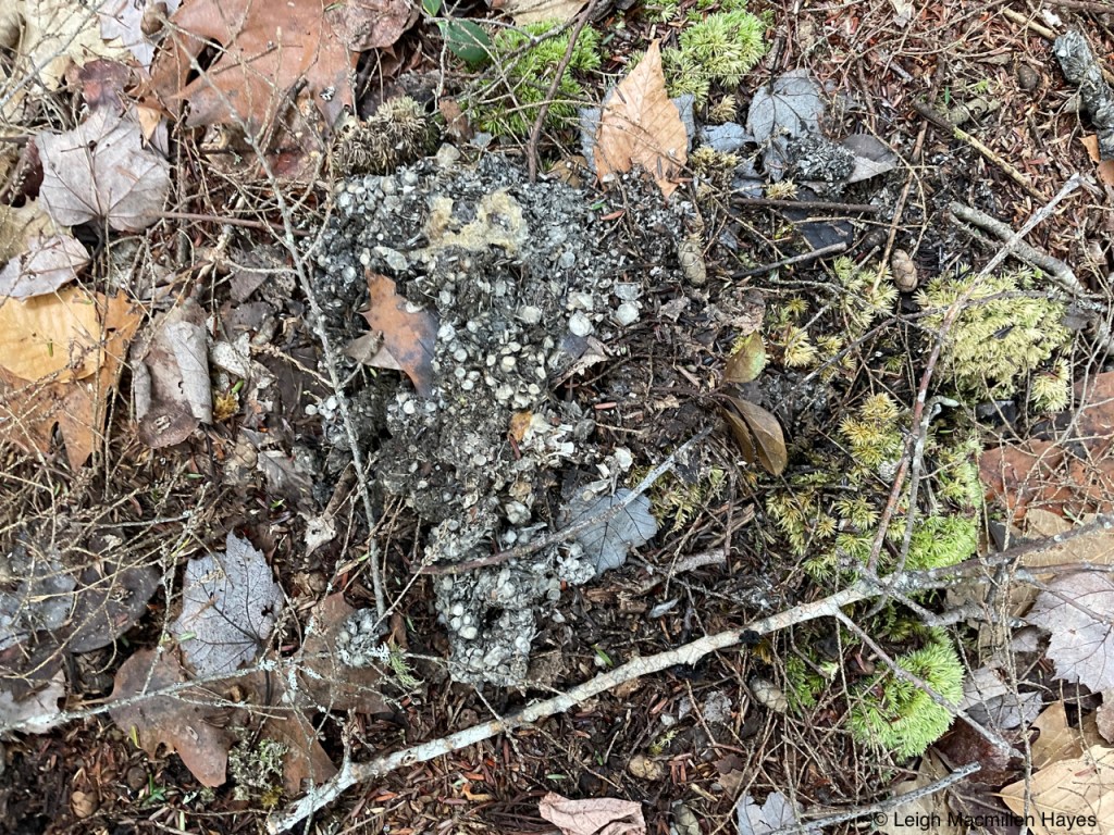 And the midden (trash pile) of a Red Squirrel, who had popped out to dine between our ascent and descent.