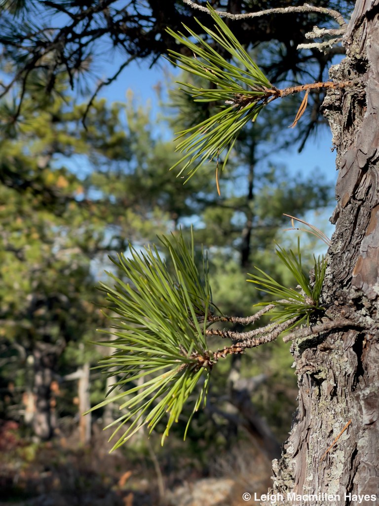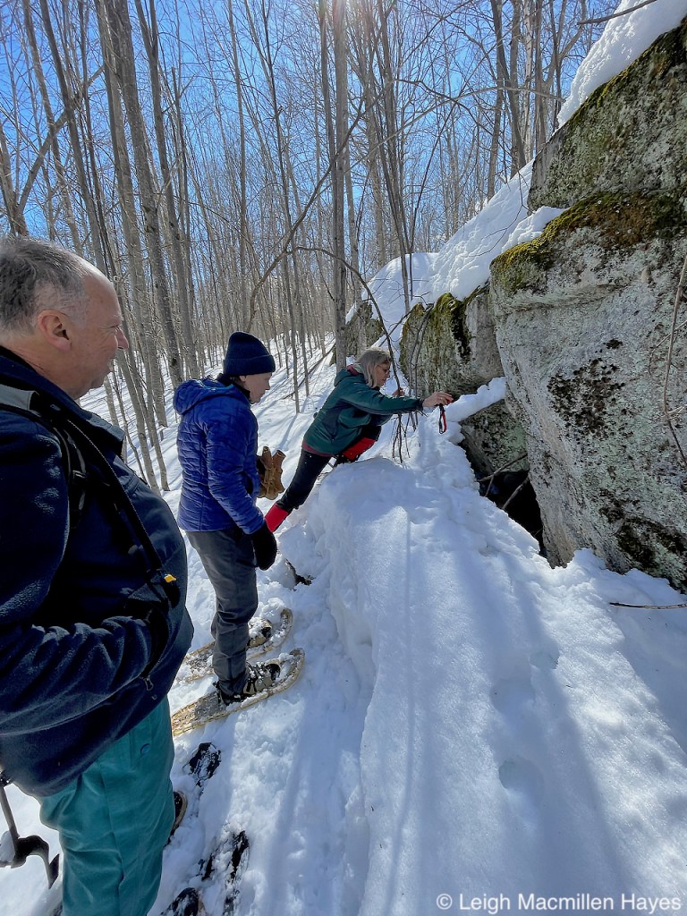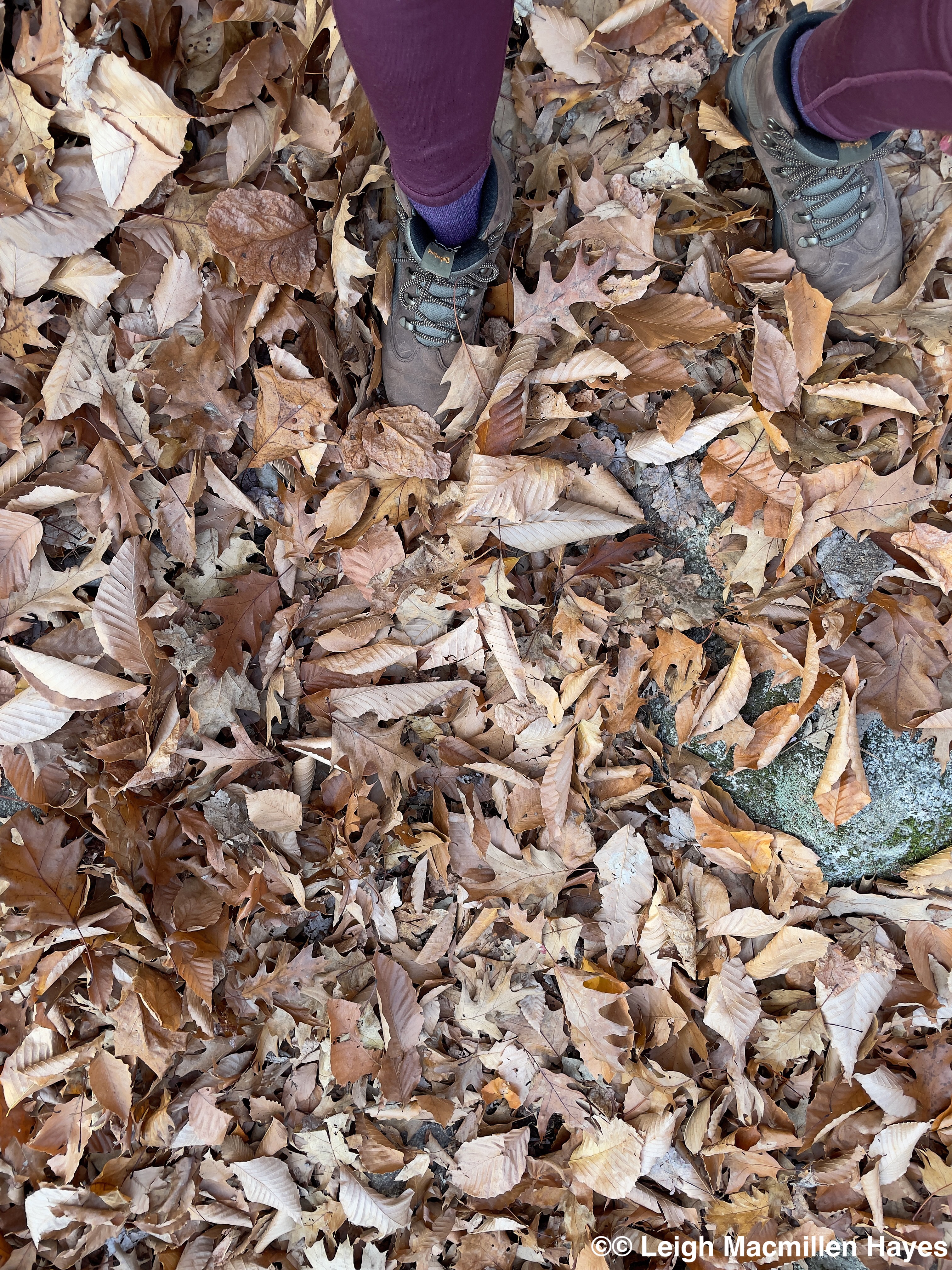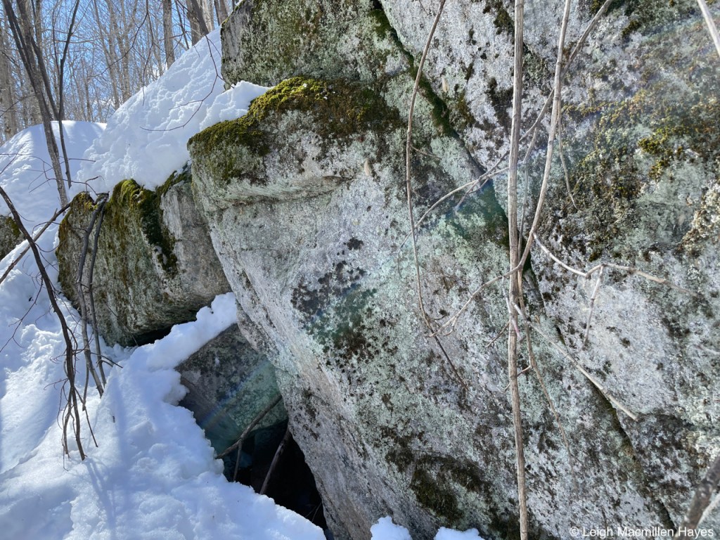 Like two days ago, it was another super windy day, and we could see the trees sway a bit above us, but felt rather protected in the woods. And at this boulder, it was the same and so we decided to turn it into lunch rock. There was no where to sit, and so we stood and ate our sandwiches, enjoying the view before continuing on.