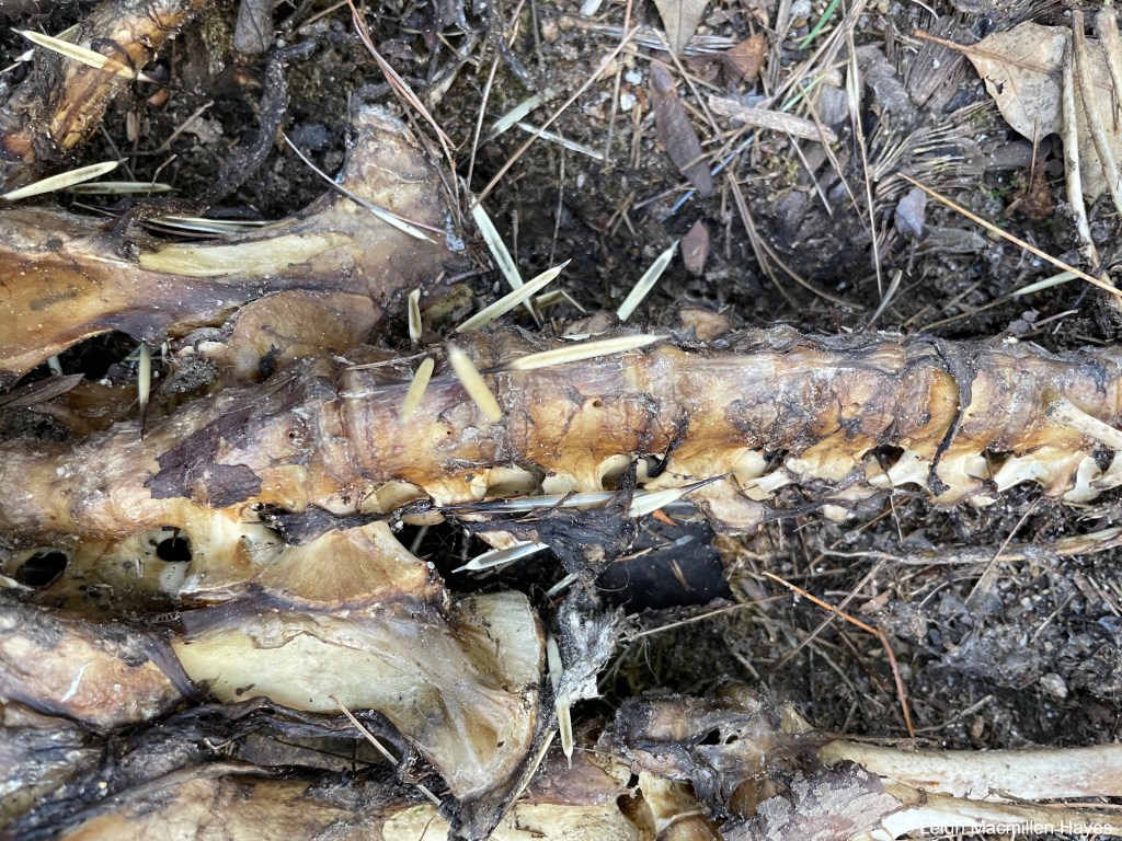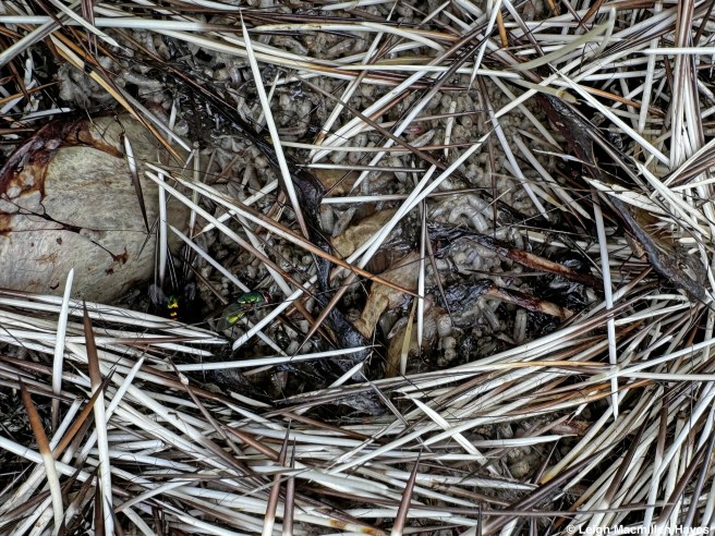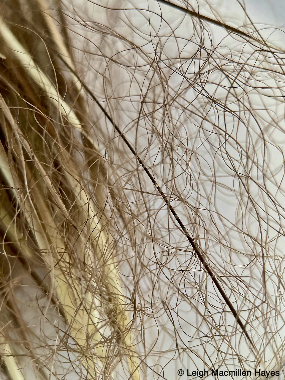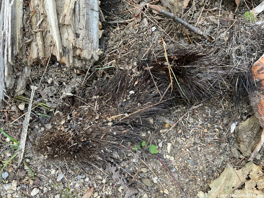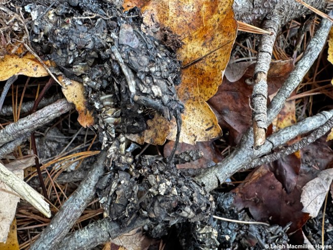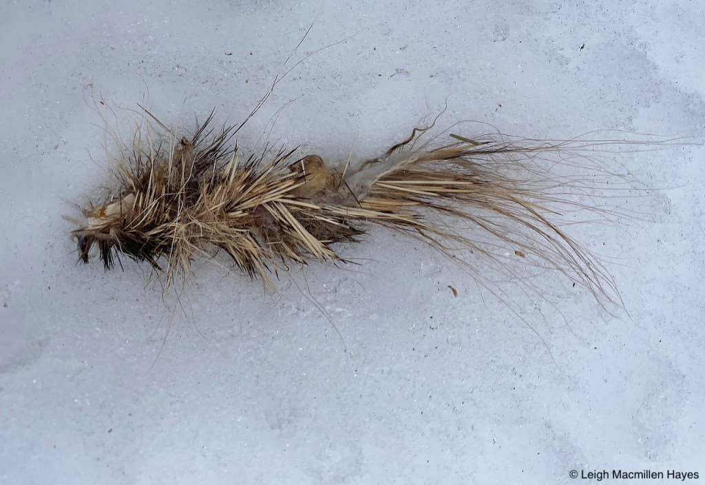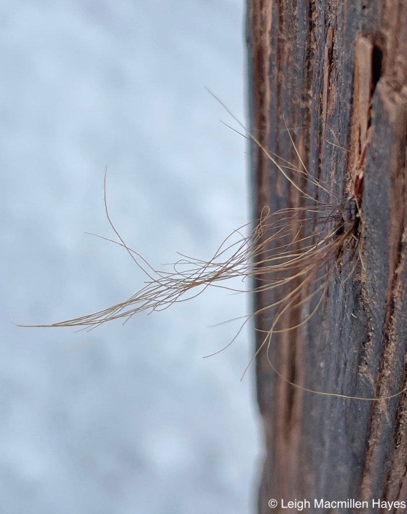 And in the process, some bear hair gets stuck. Yes, that’s bear hair. It’s bleached out from the sun, indicating this was deposited at least six months or more ago.