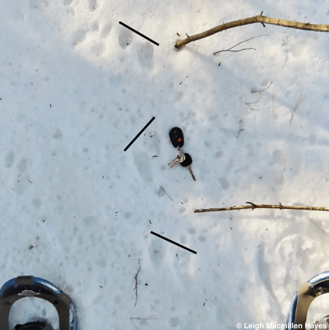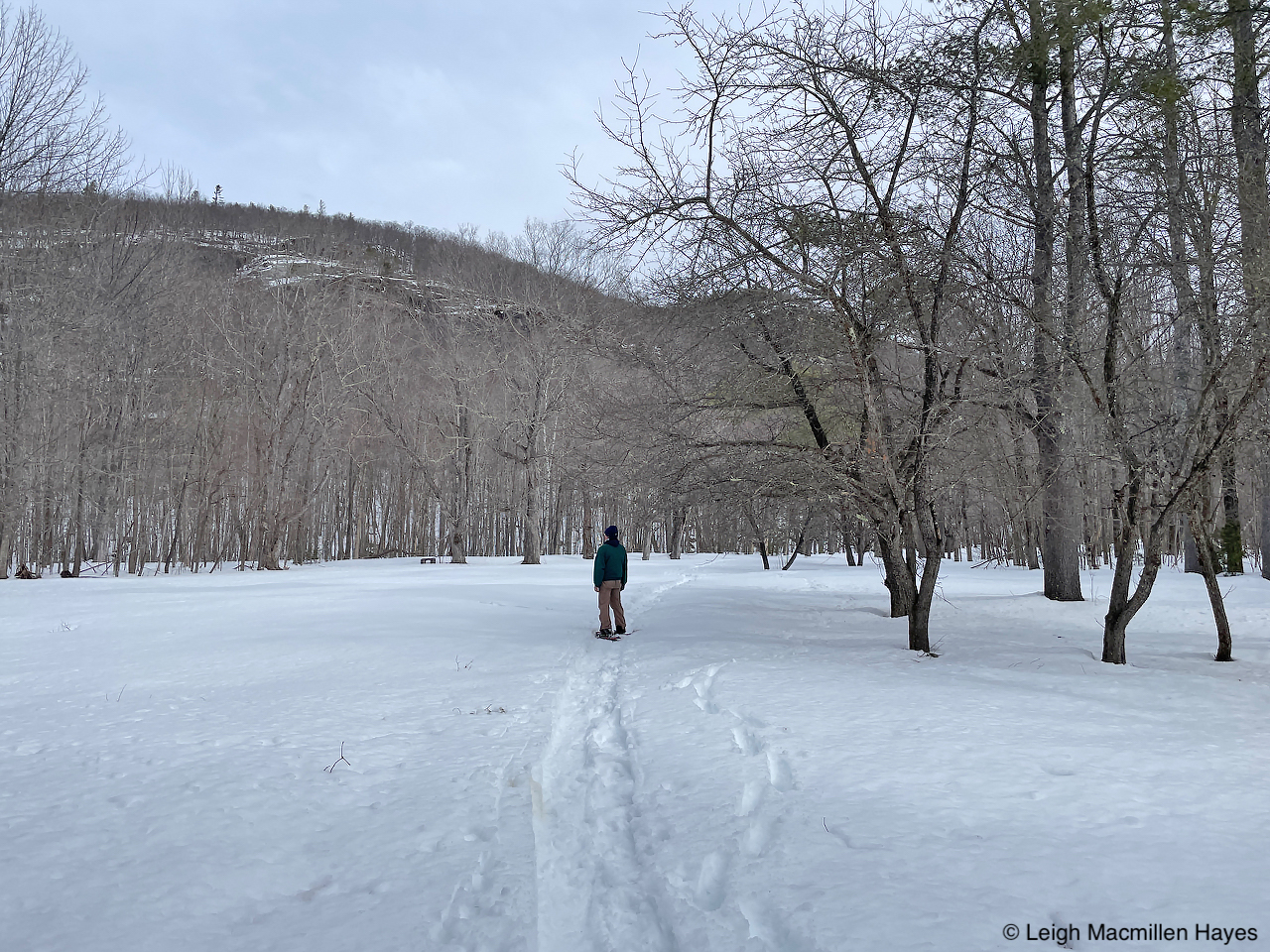 Across the field and then into the woods we ventured, our footsteps being the first to make an impression in the snow.