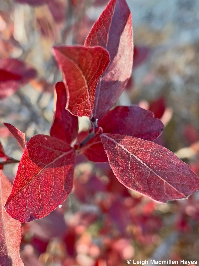 As we headed back down the road for that final 1.2 miles, giving us a 6.5 mile round trip, I continued to check the telephone poles, and then across a ditch, this colorful sight captured my attention. What in the world could show off these colors in November. My mind quickly scanned my knowledge, which isn’t always up to par when it comes to flowers, but nothing registered. Until I took a closer look by crossing the ditch. And touched the petals and leaves. Um. They weren’t real! So strange. They were well embedded in the sidewall of the ditch. But why? We’ll never know.