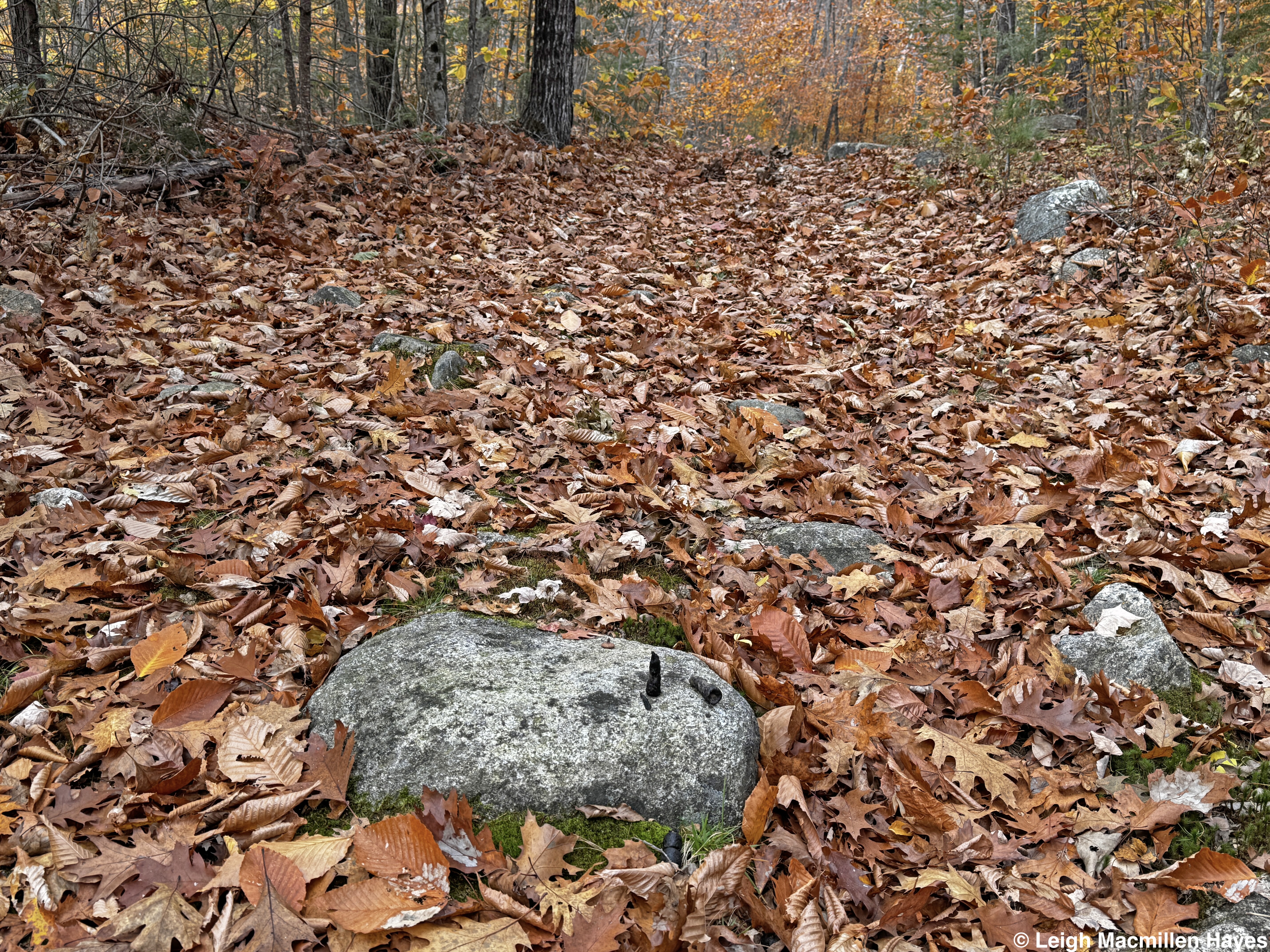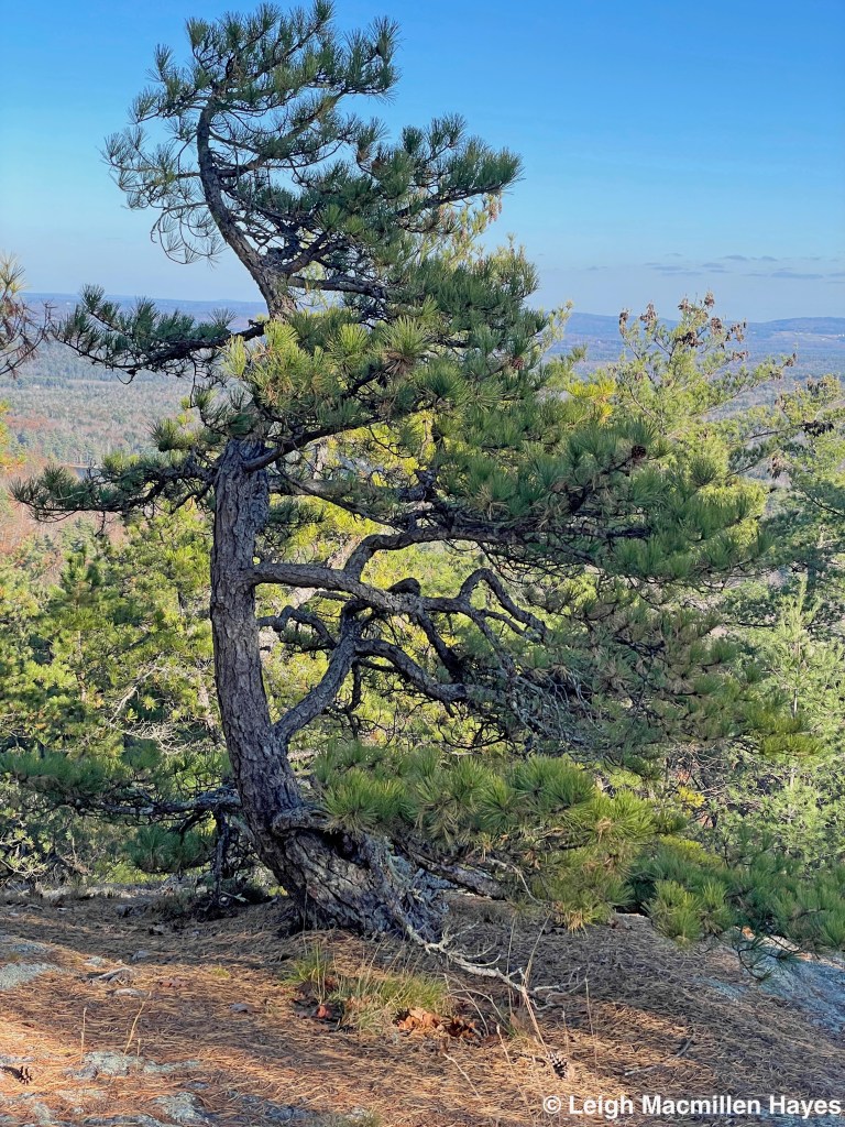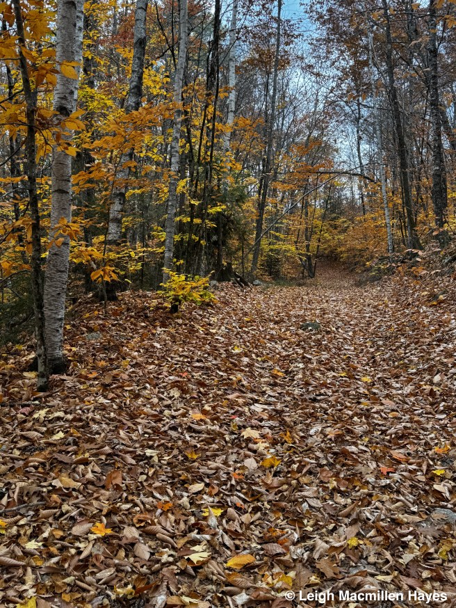 The summit was once the site of a fire tower, back in the day when that was the means to spot smoke or flames in the woods. Now, the four cement stanchions and some boards are all that remain, but we did wonder about work to build this one and so many others like it. That said, I’d read that the original trail up this mountain was rather a straight line, and perhaps that made it easier to get materials to the top.