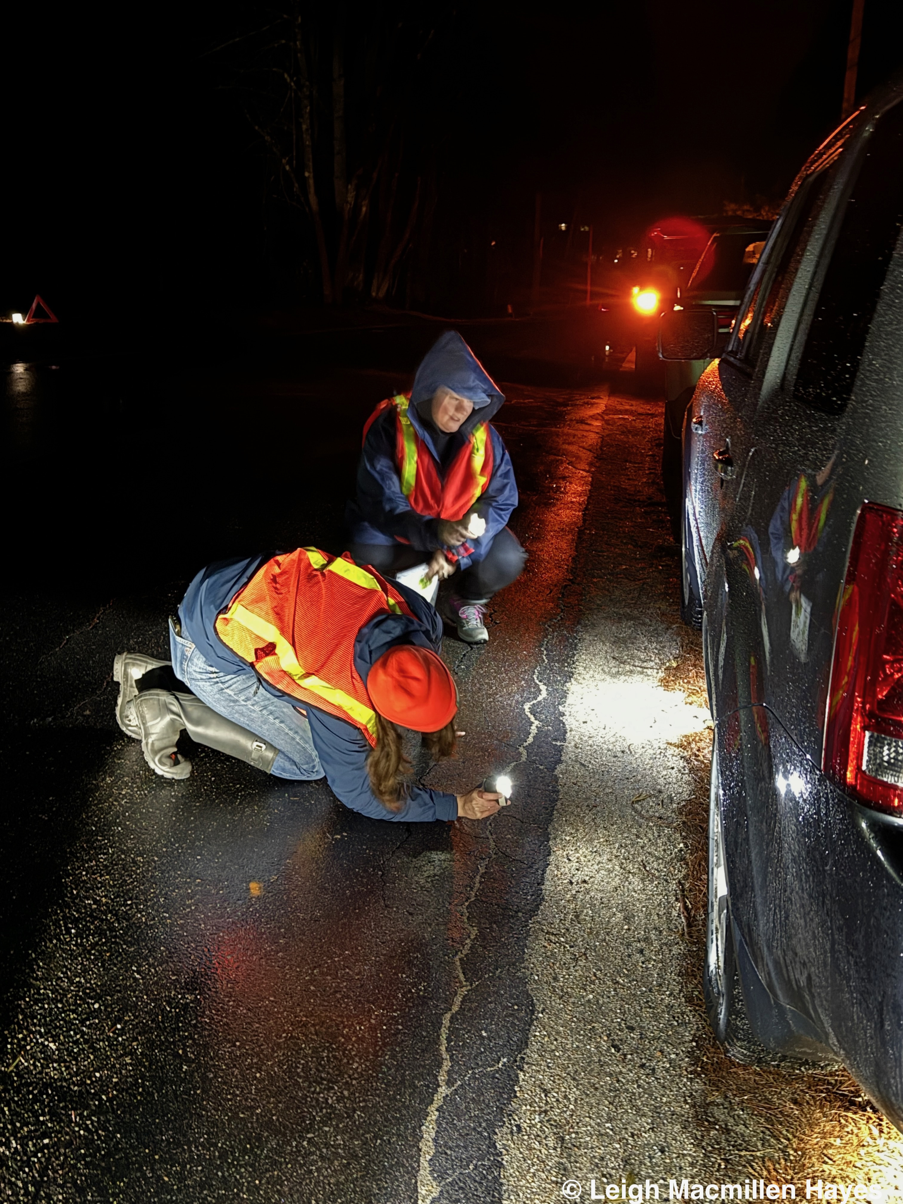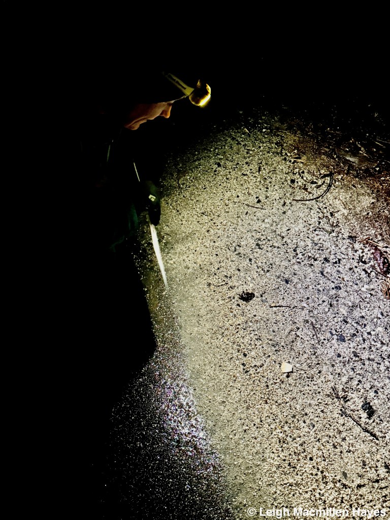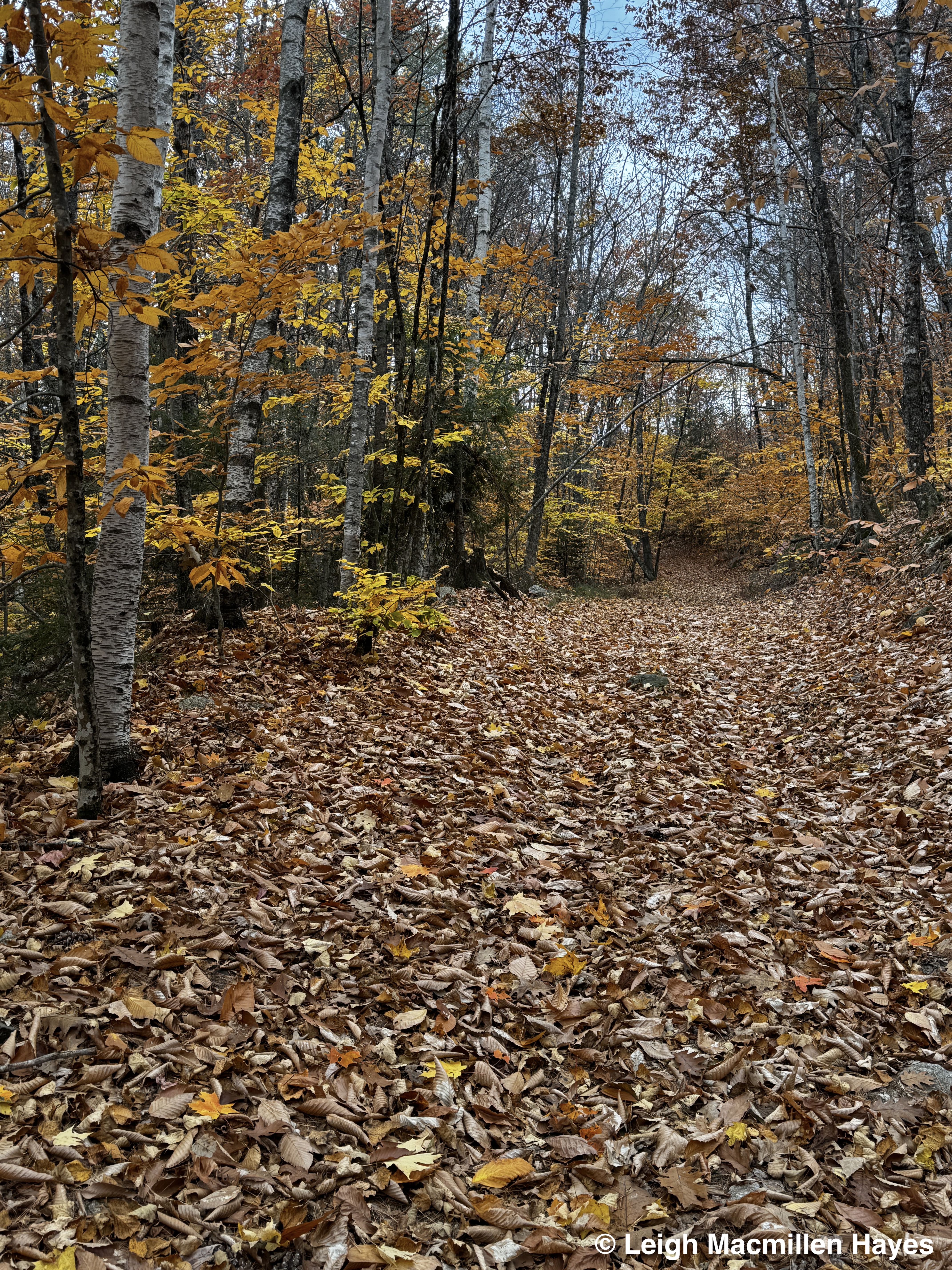 Ah, but the best part of the long walk up this road was the fact that there were camps and they needed electricity. Well, the poles were there. And the wires were there. But over and over again, we discovered the wires were on the ground, buried under the leaves and it seemed like they’d been down for a long time.