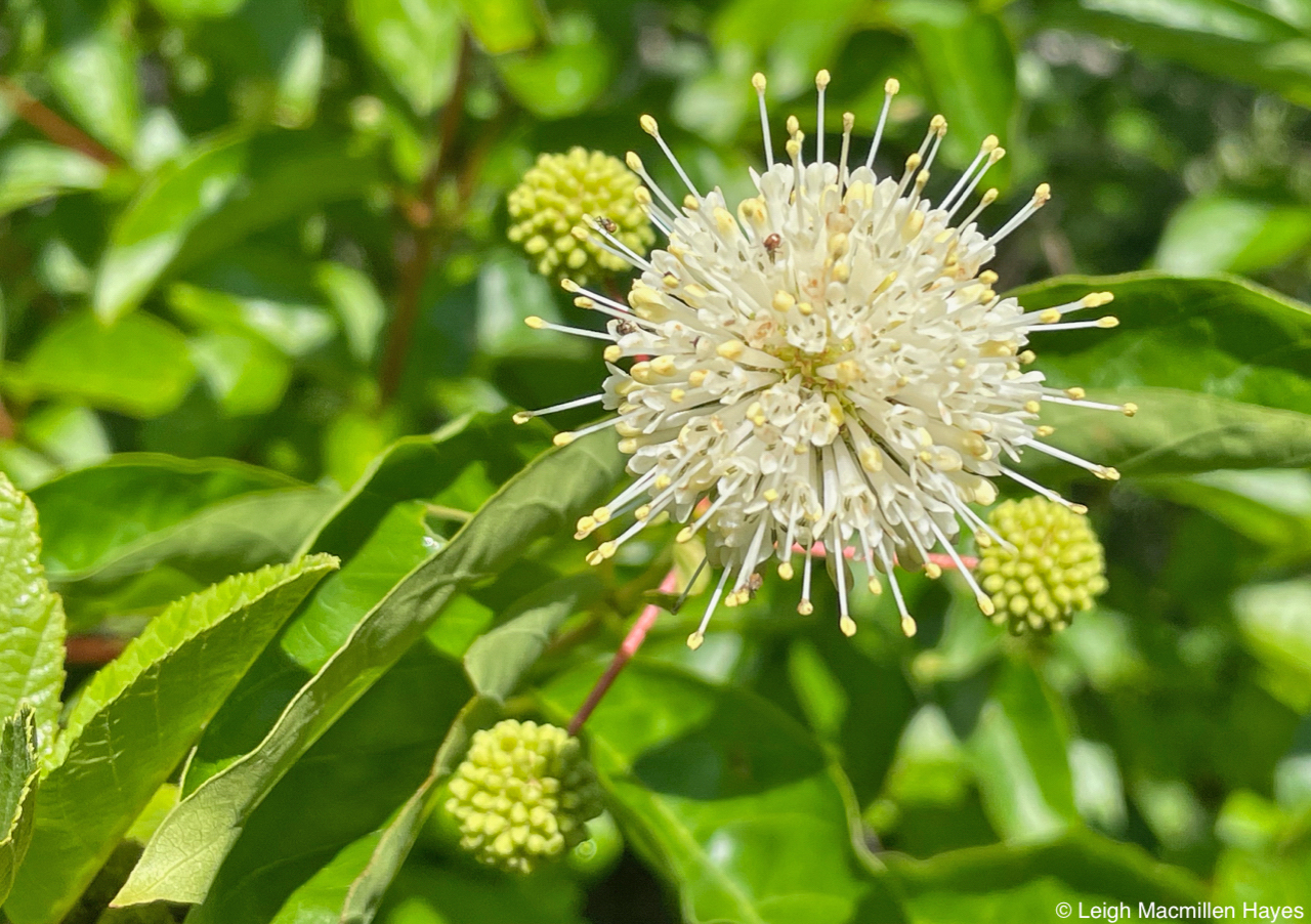 What you are looking at is the flower heads: They are about a ¼ across and petal-less. The inner bracts, with their purplish tips form a ½-inch tube exposing just the yellowish to creamy white stamens at the top. And the seeds are teeny tiny, as you can see, with tufts of white hairs to carry them like parachutes upon a breeze.