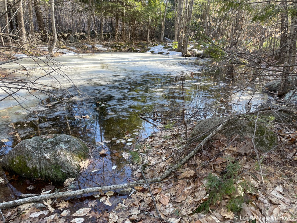 Meanwhile, the Merganser had moved to another part of the pond, but the Red-eared Slider maintained its position and I gave thanks for the opportunity to see it basking, even on a day with the temp in the low 40˚s.