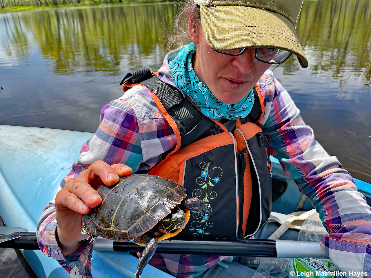 His mate, on the other hand, stood upon a log with a Red-eared Slider and we watched in bewilderment because neither one seemed concerned about the other.