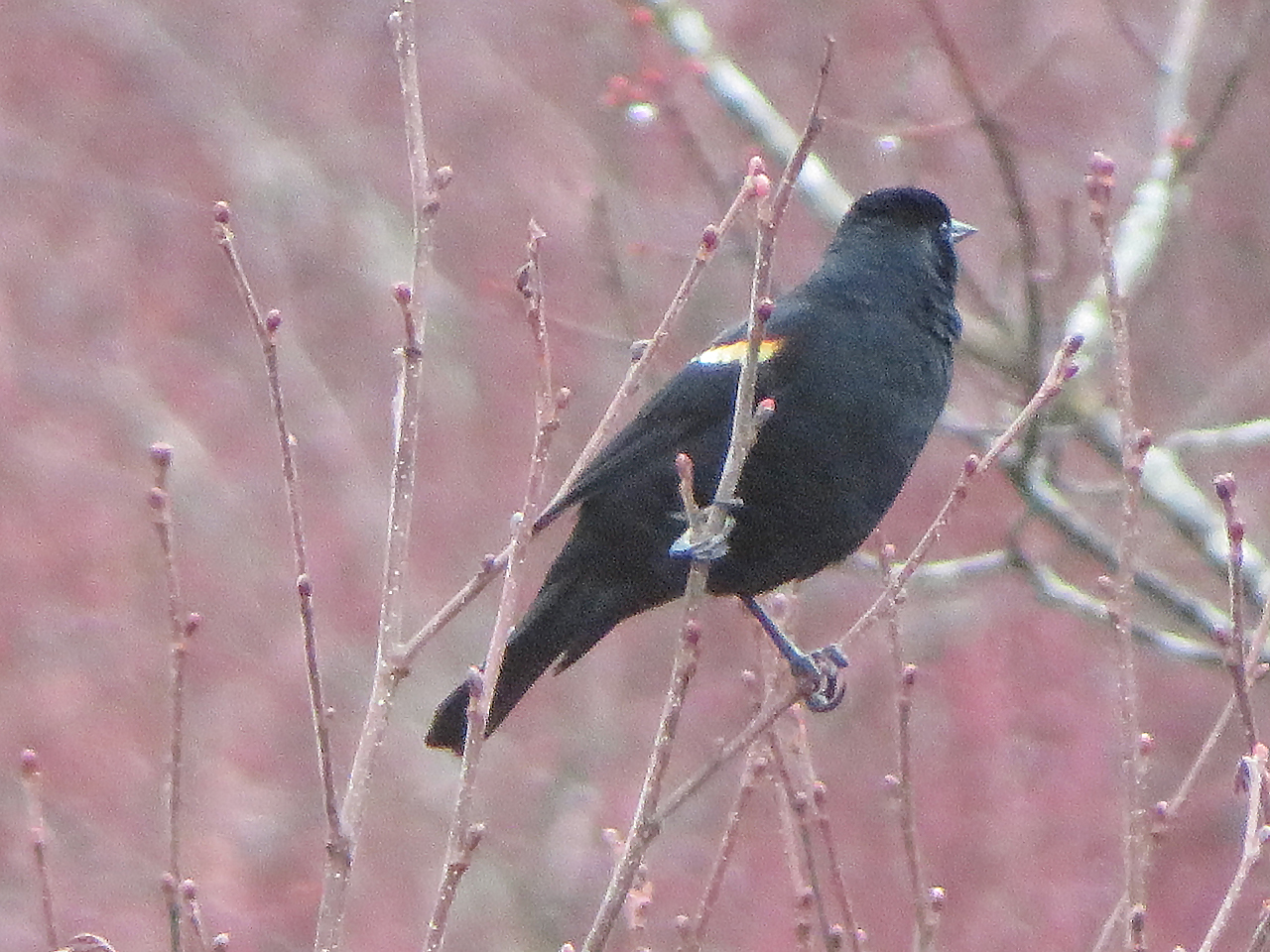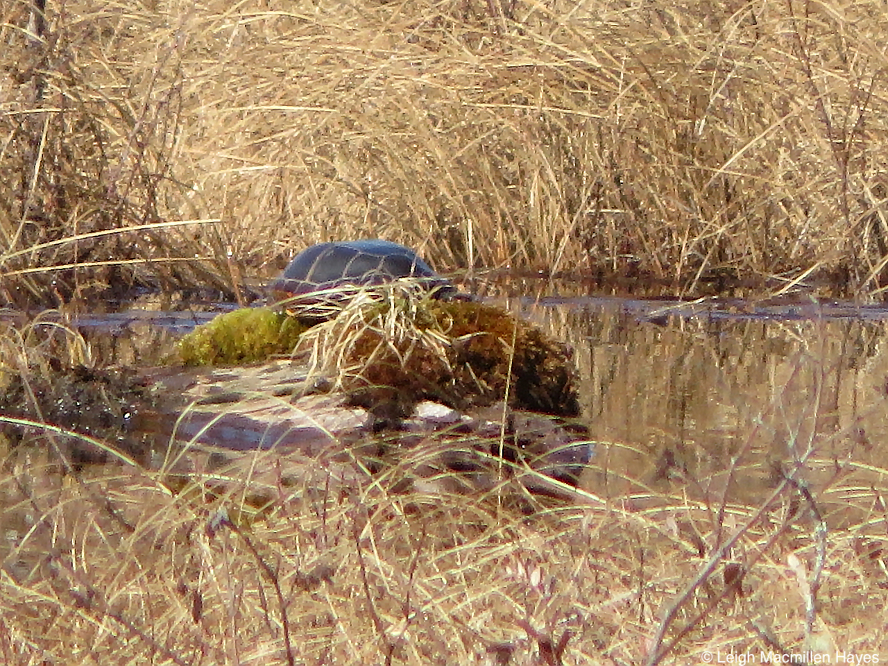 Meanwhile, the Merganser had moved to another part of the pond, but the Red-eared Slider maintained its position and I gave thanks for the opportunity to see it basking, even on a day with the temp in the low 40˚s.