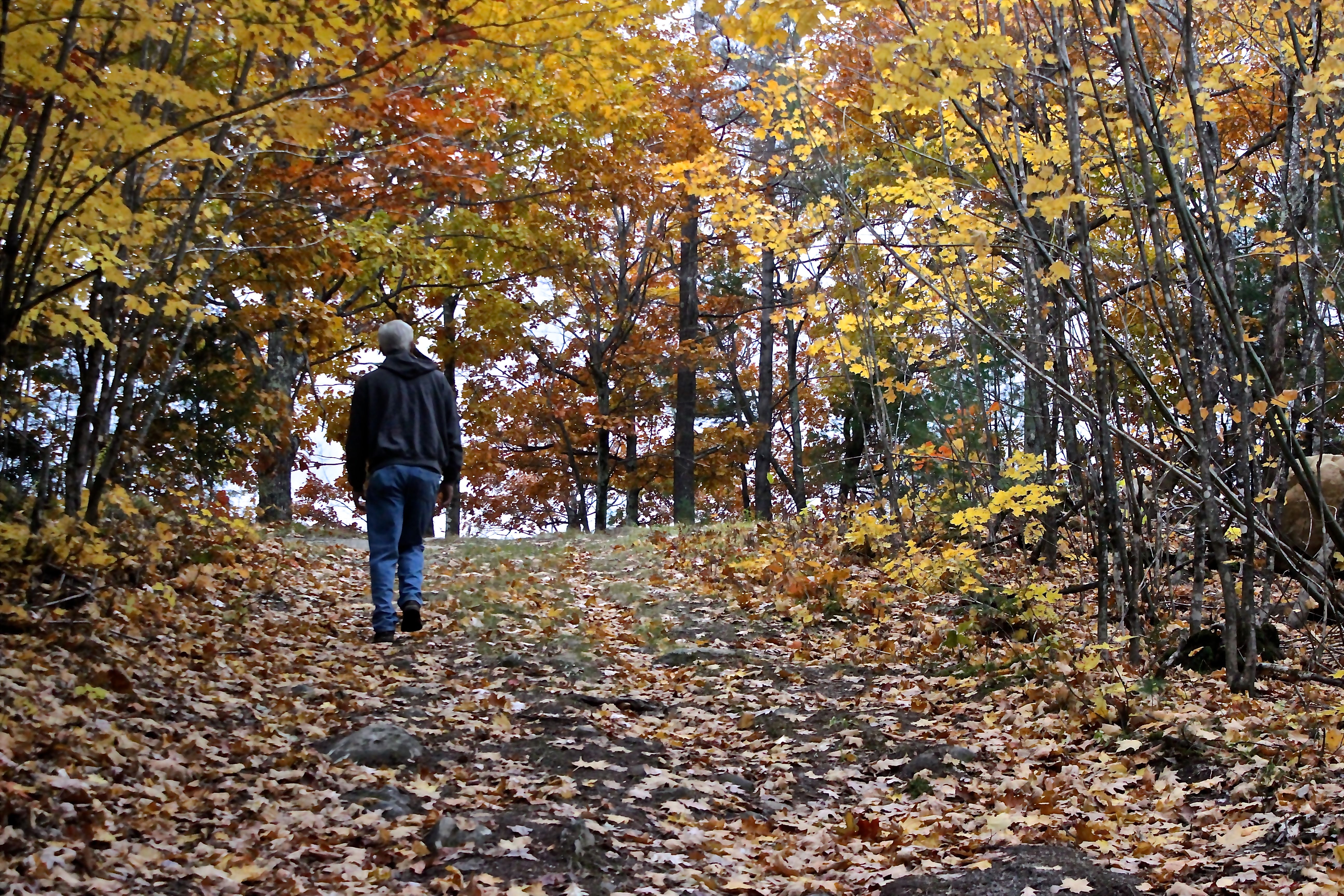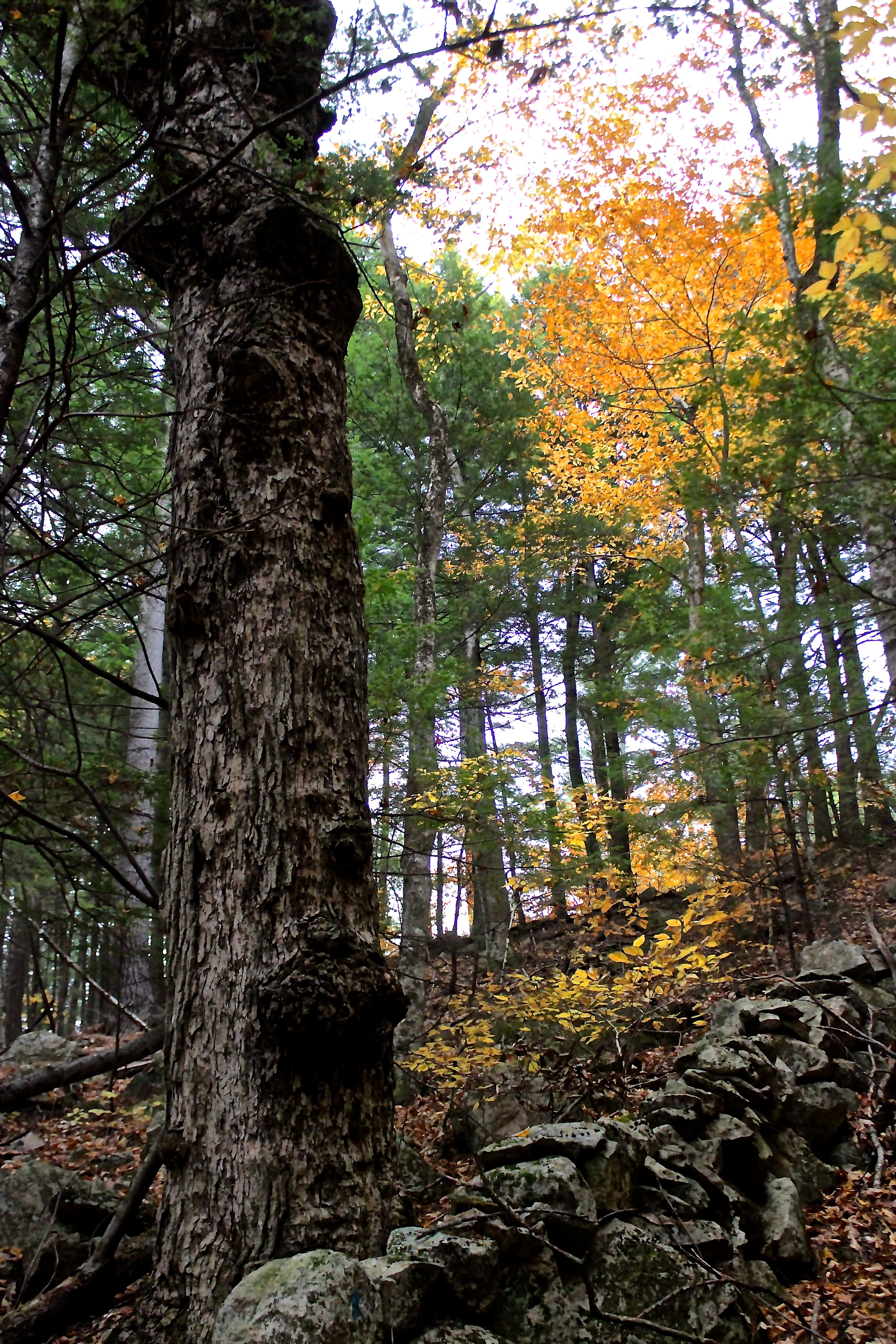 So here’s the thing about the conifers. For a couple of days we met only deciduous trees, and most of them were the species I mentioned above. And then, as we went higher in elevation, we began to meet a few Eastern Hemlocks and White Pines and many of the trees we are familiar with in our woods. My Guy even noticed the various communities, and along some trails Mountain Laurel grew almost like a hedge.