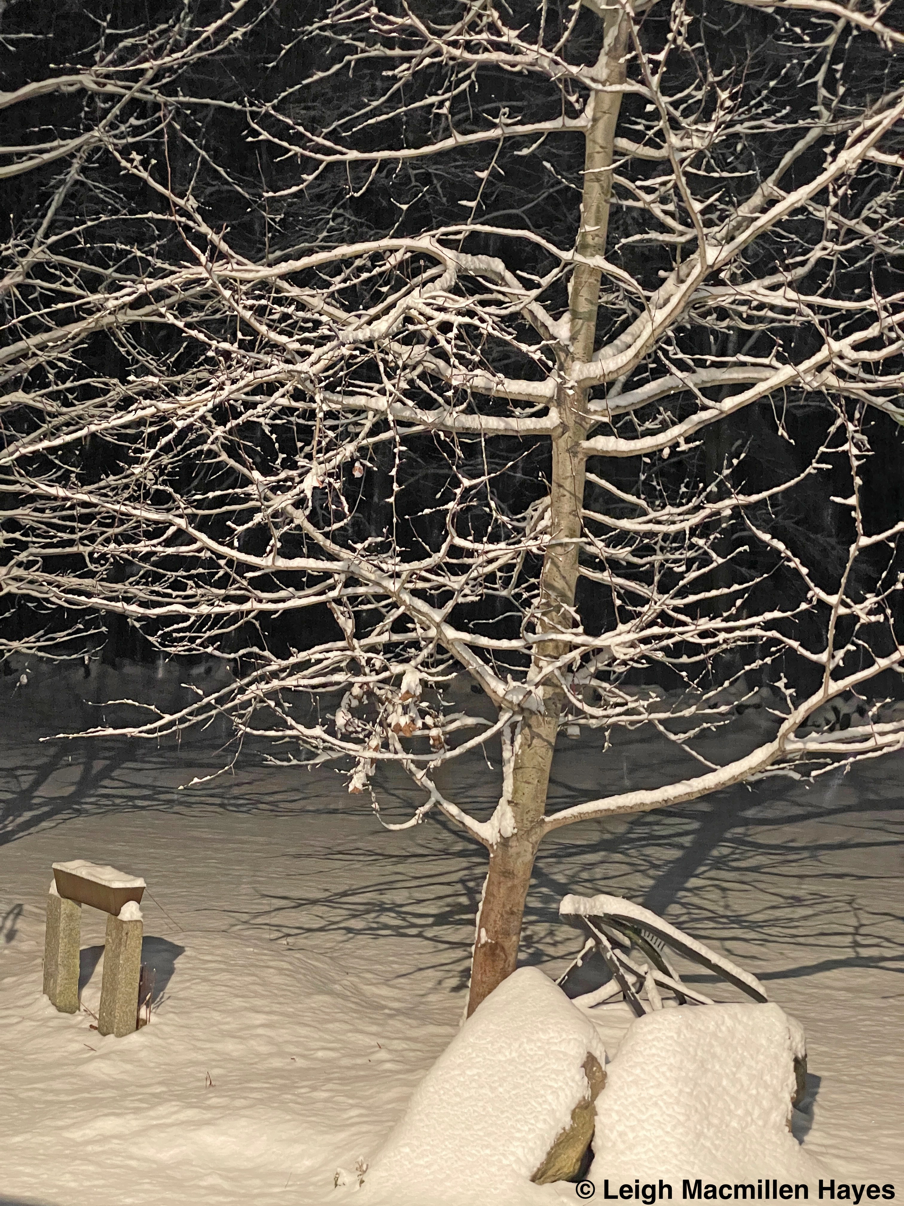 And all those Xylem cells–they are made up of an outer wall of lignin, which gives the trees structure, and an inner layer of cellulose, which provides flexibility. Some trees, like Gray Birch, have a high concentration of cellulose, thus allowing them to bend under the weight of the snow, usually, but not always, without snapping.