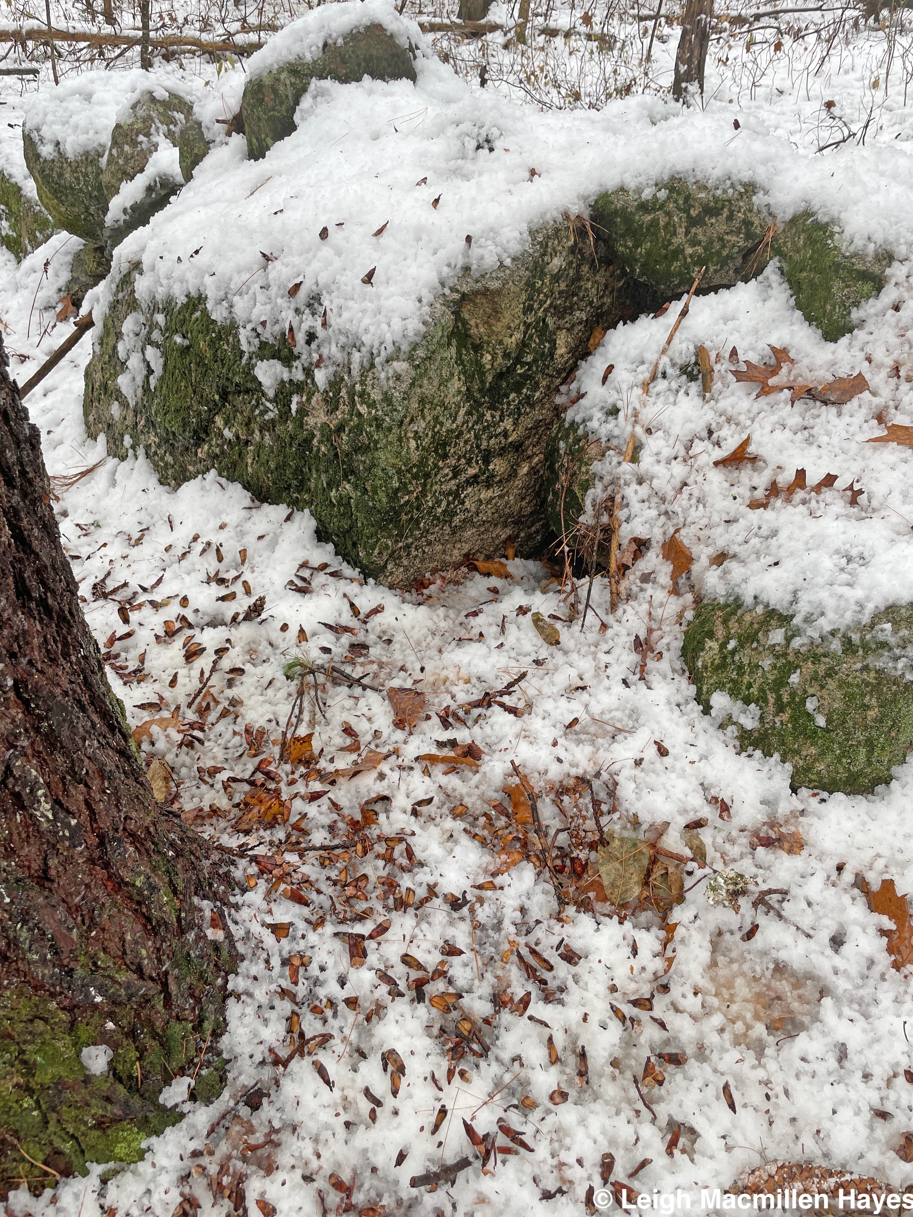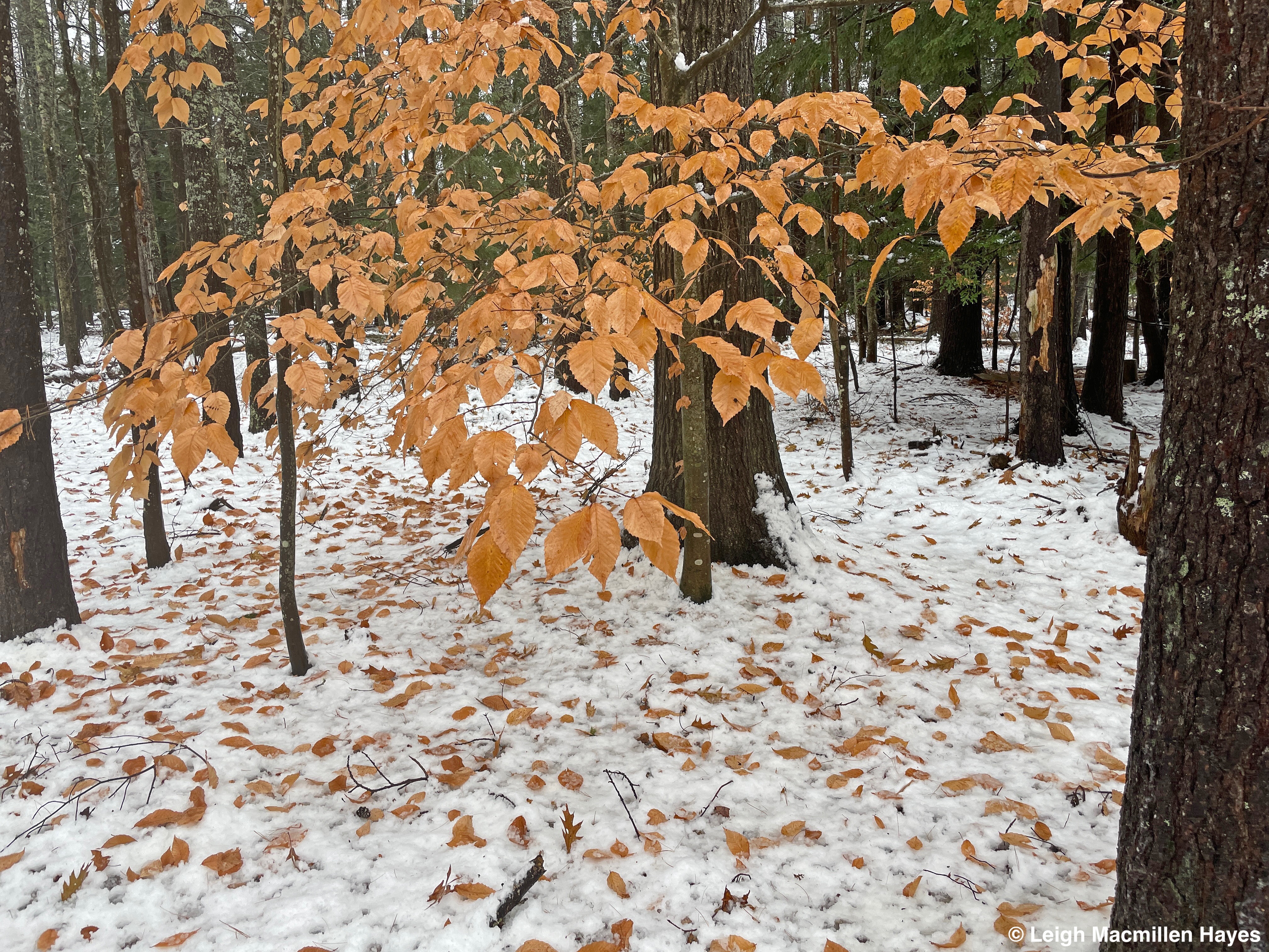 Leaves on Beech are marcescent and wither on the trees over the winter. In fact, if there is a sudden breeze and the leaves start to rattle, I’ve been known to become rattled, thinking there is something or someone else in the woods with me.