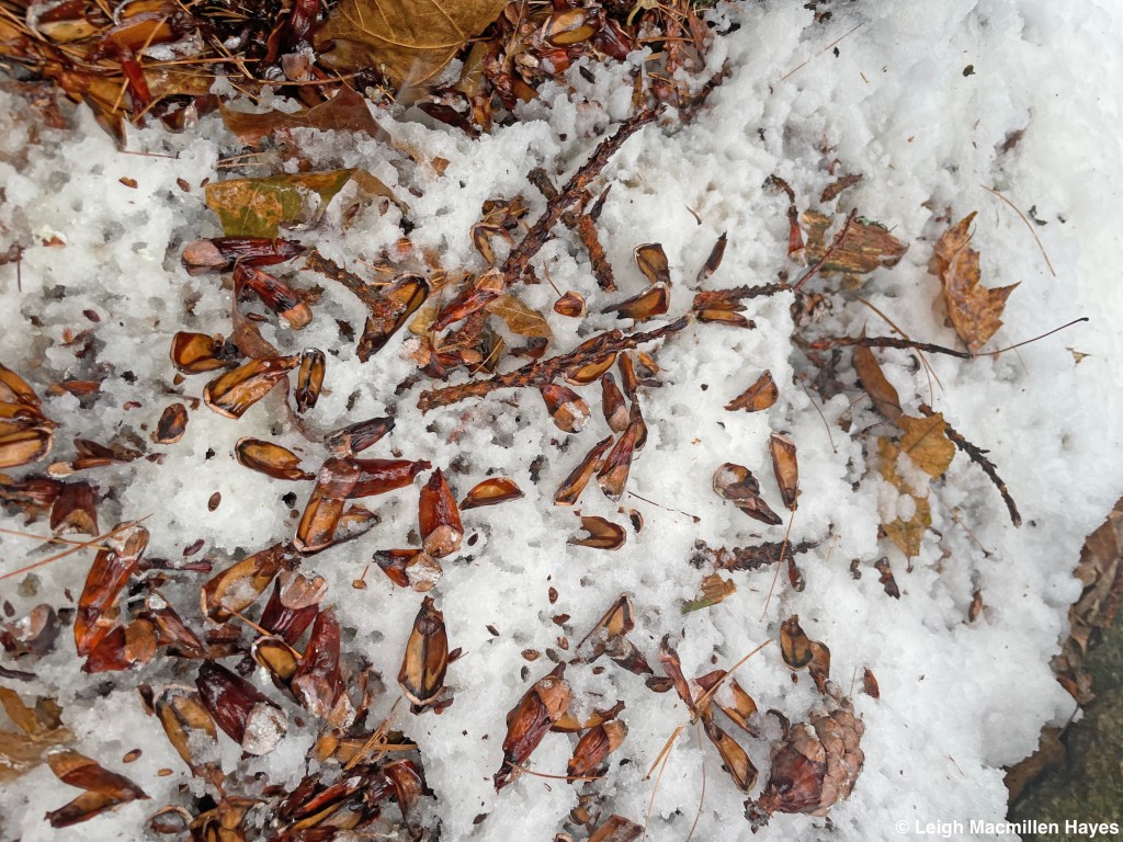 So here’s the deal. A friend and I were supposed to lead a tree workshop today, but the weather didn’t cooperate. I’m not complaining about the few inches of snow–it’s the sleet that came first and the rain that is now eating up some of the snow that bothers me.