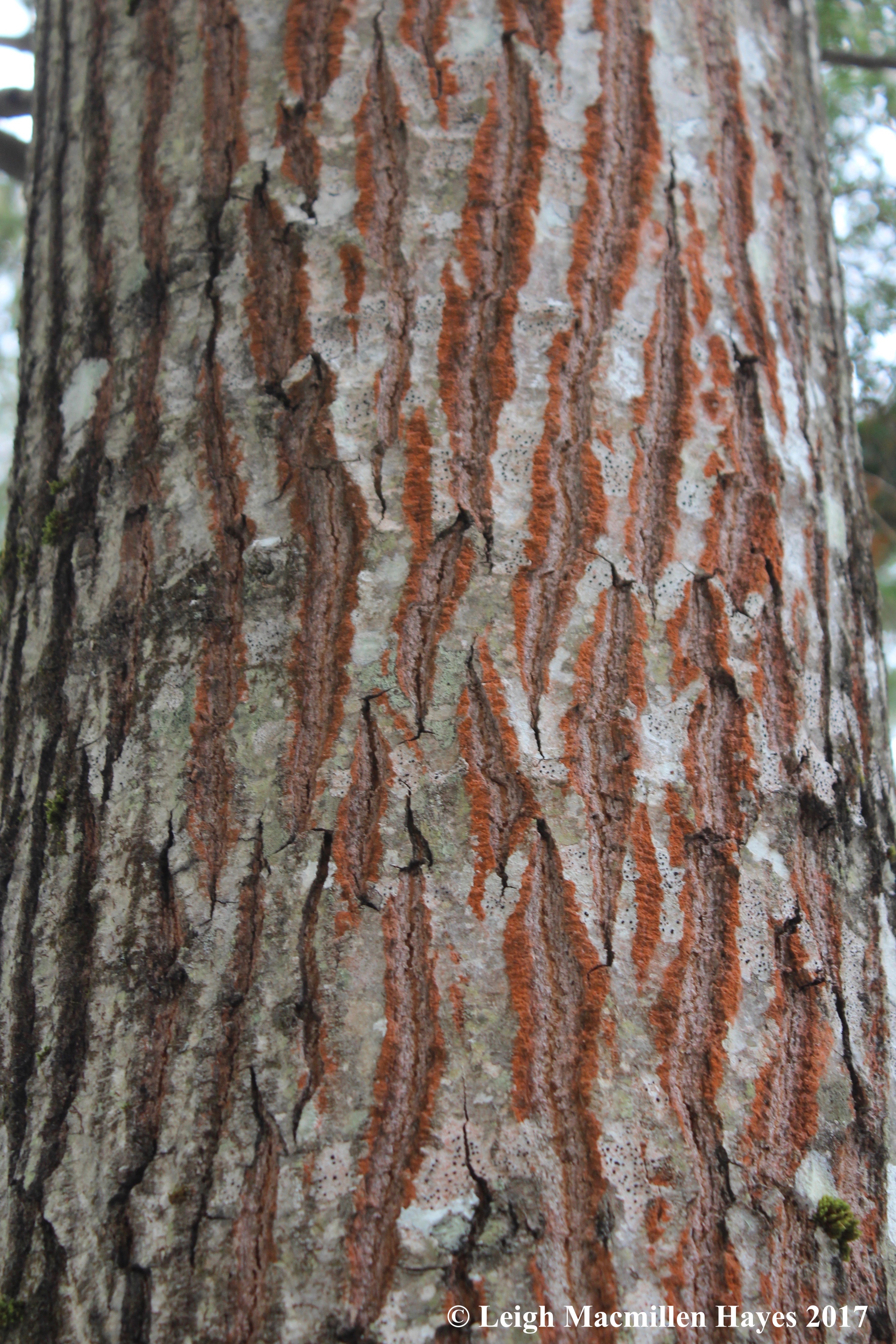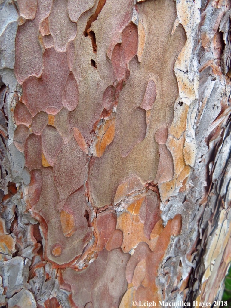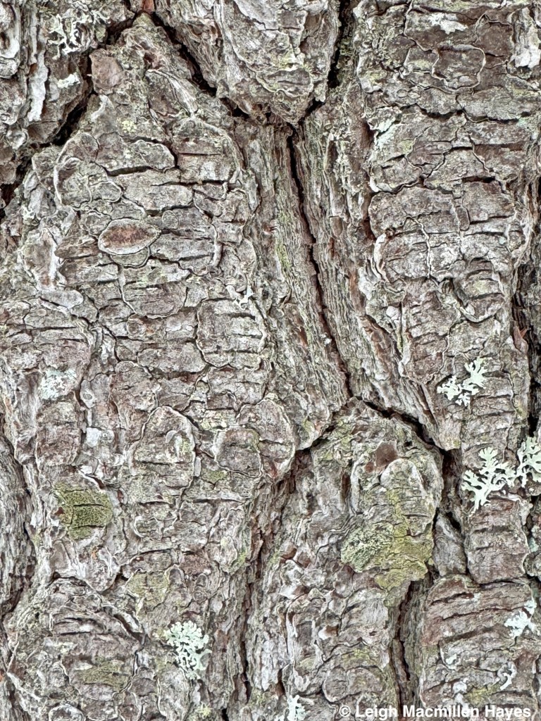 The bark is reddish brown to pinkish gray. I see it as a jigsaw puzzle, but my friend and fellow naturalist Dawn, sees it as a topo map.