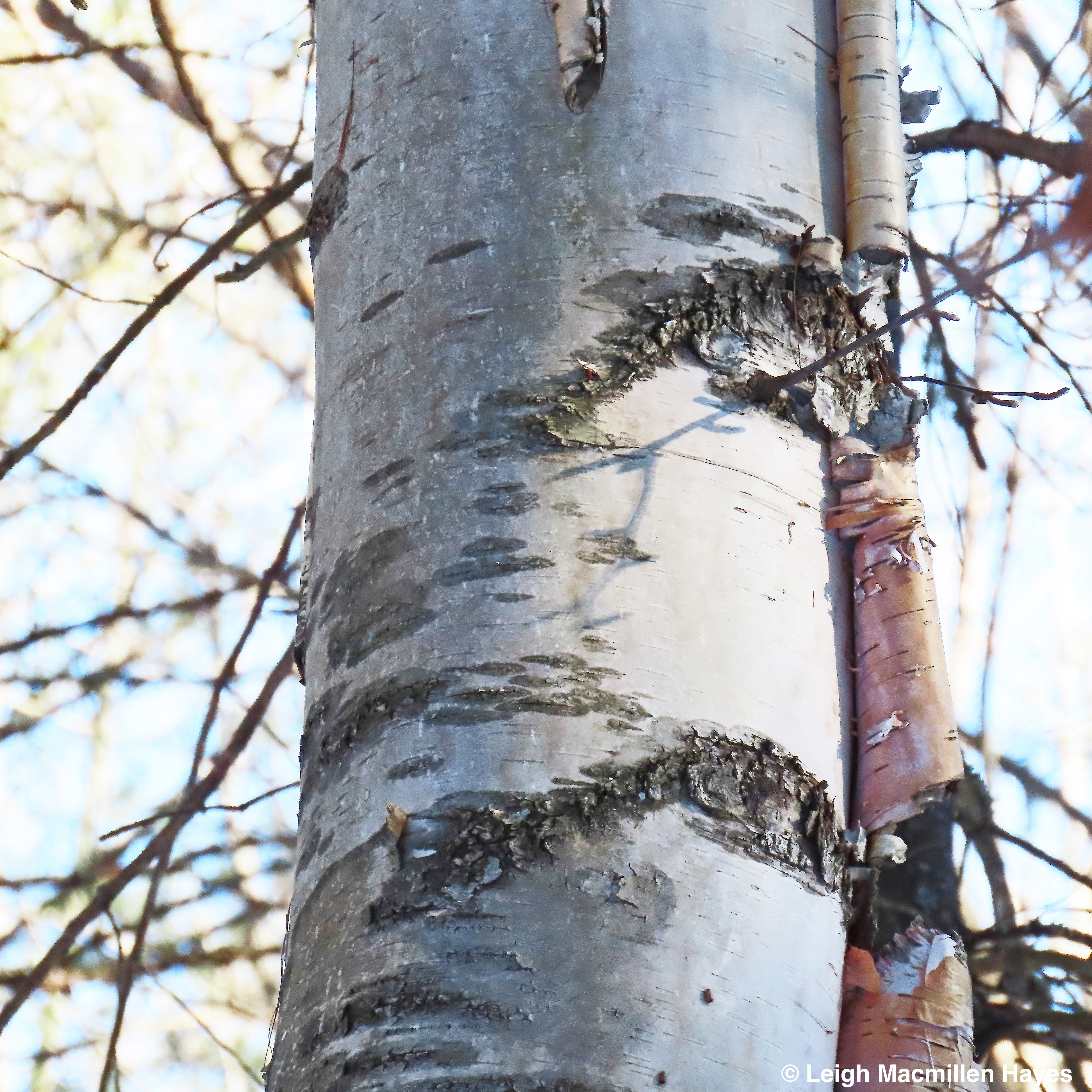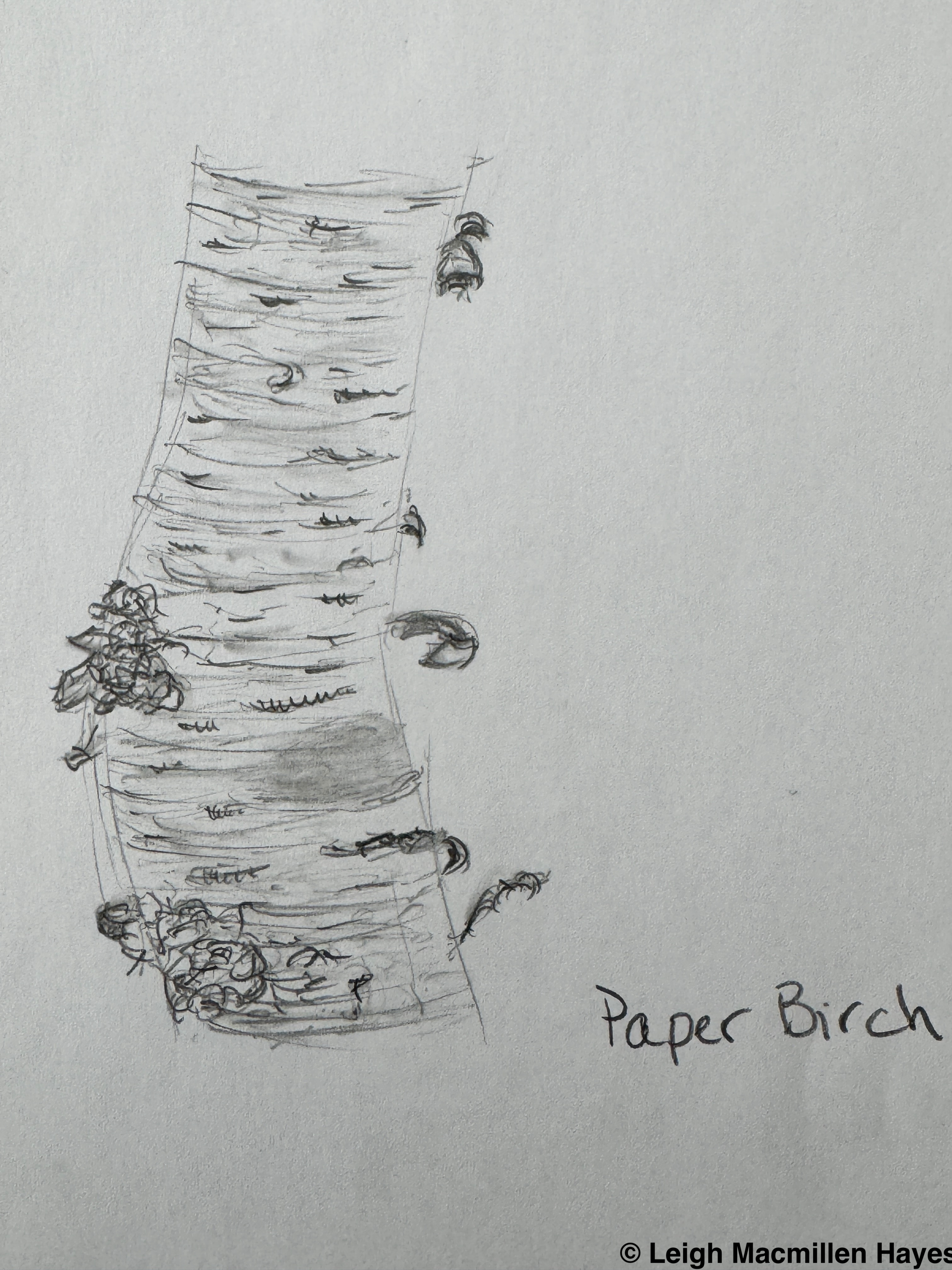 One of the features I look for on a Birch to determine if it is a paper, besides the curly bark, is the mustache that is drawn over the branches on the trunk. In the photo above, the branches are no longer there, but do you see two mustaches? Sometimes both ends droop down even more.