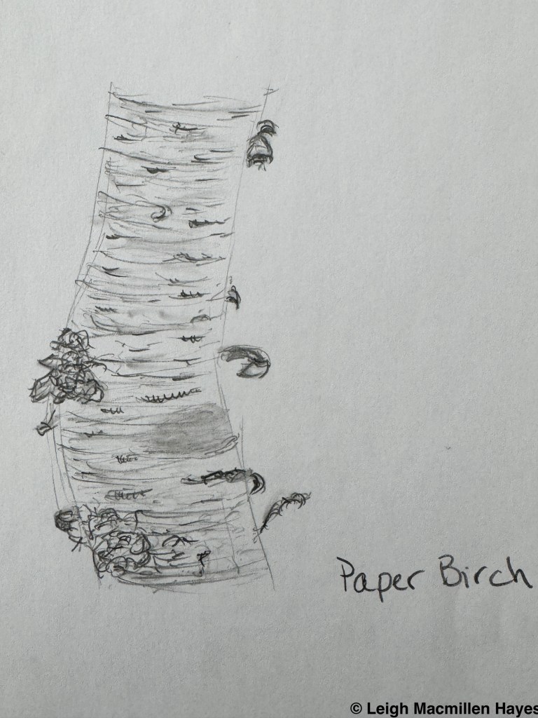 And now let’s meet several members of the Birch Family. Up first is the Paper Birch, Betula papyrifera. You may know this commonly as a White Birch, but I prefer Paper, and will explain why after introducing you to its kin.