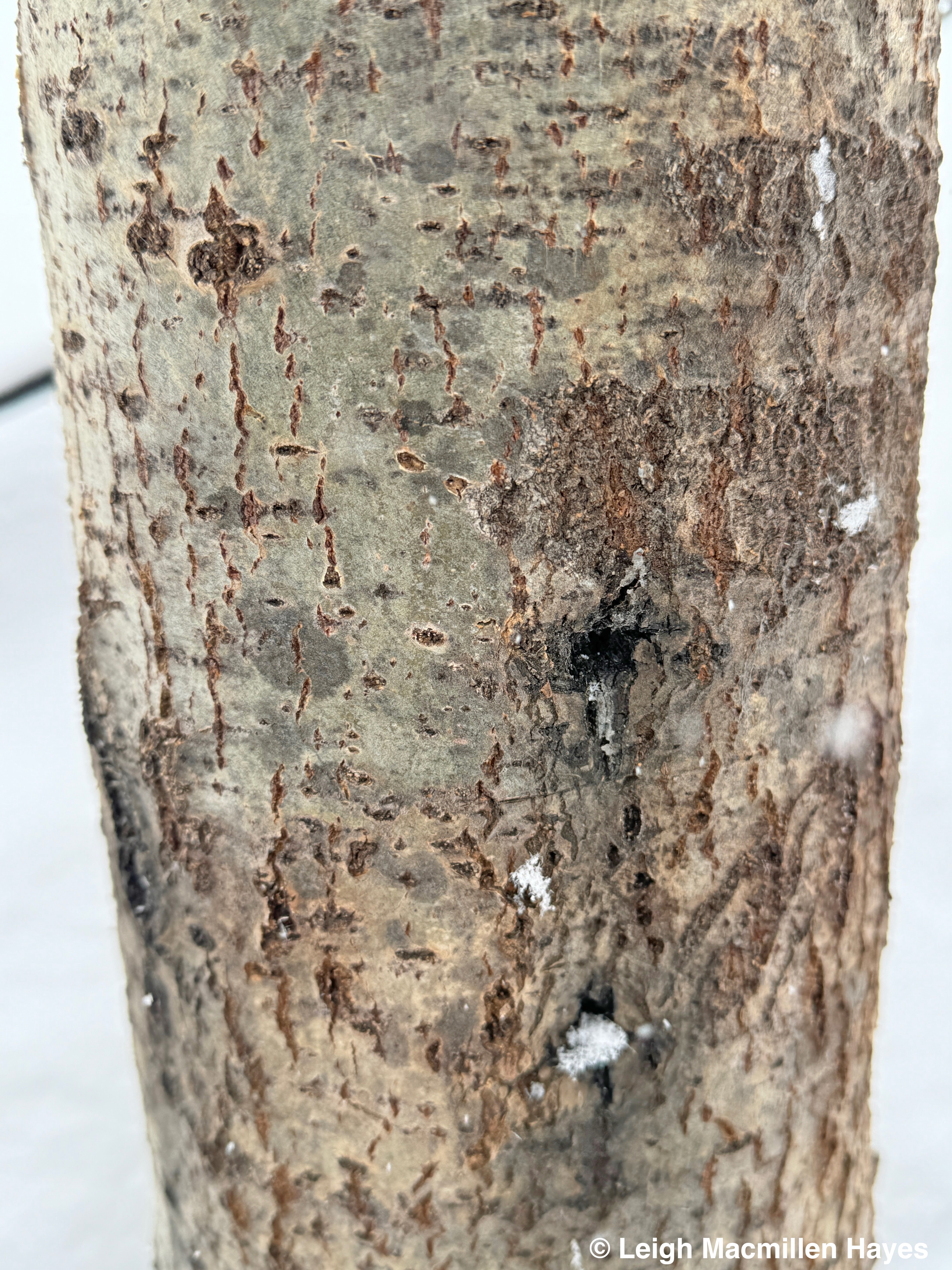 One of my favorite things about Ash bark is that it is corky and after a storm, you can pinch water out of it or stick a fingernail into it.