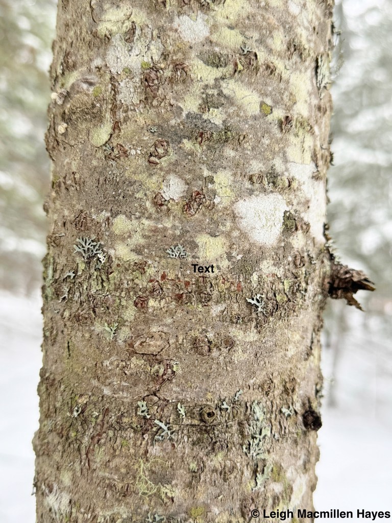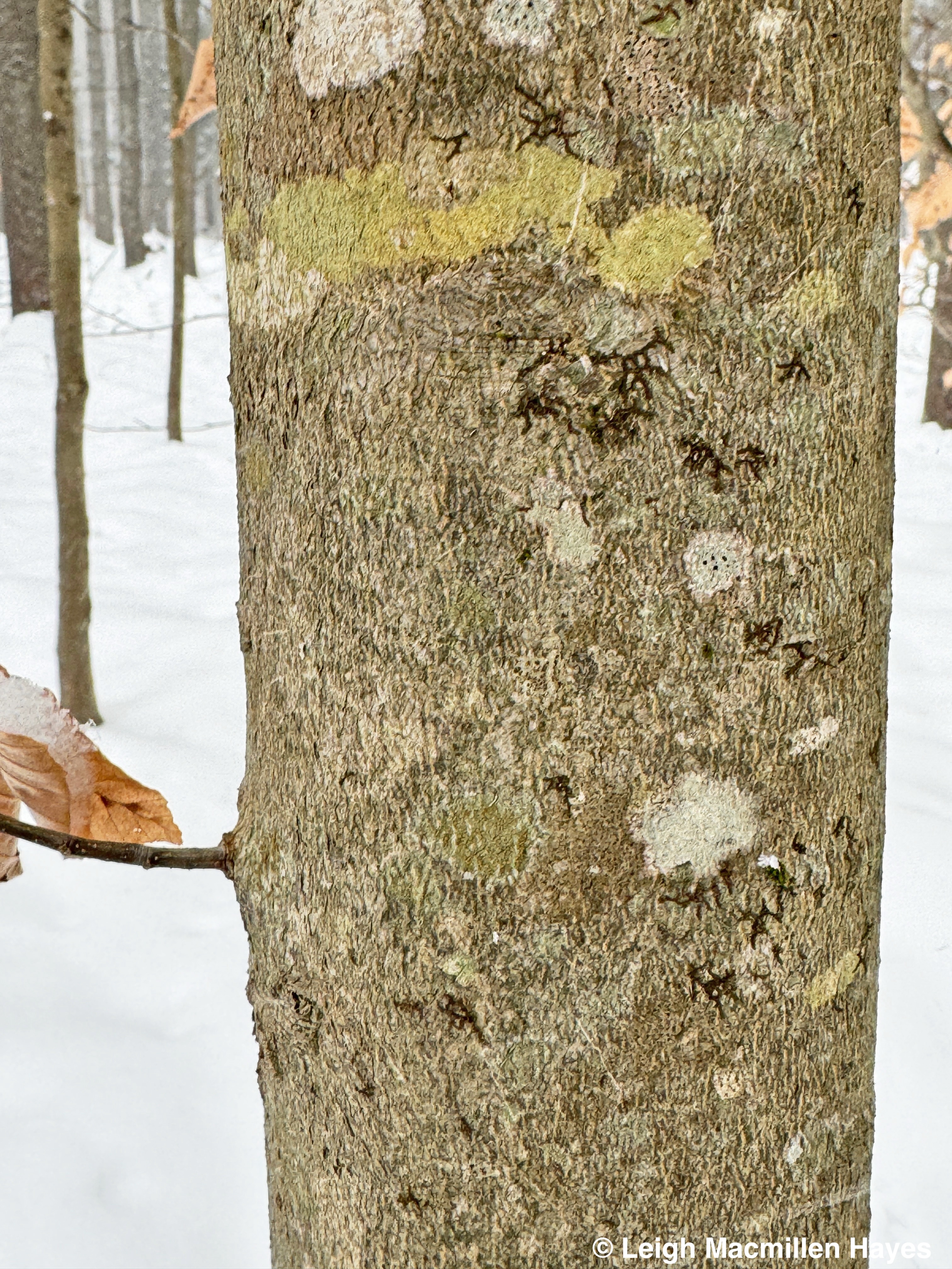 And this time I present American Beech, which can be blotched with crustose lichens (look like they’ve been painted onto the bark).