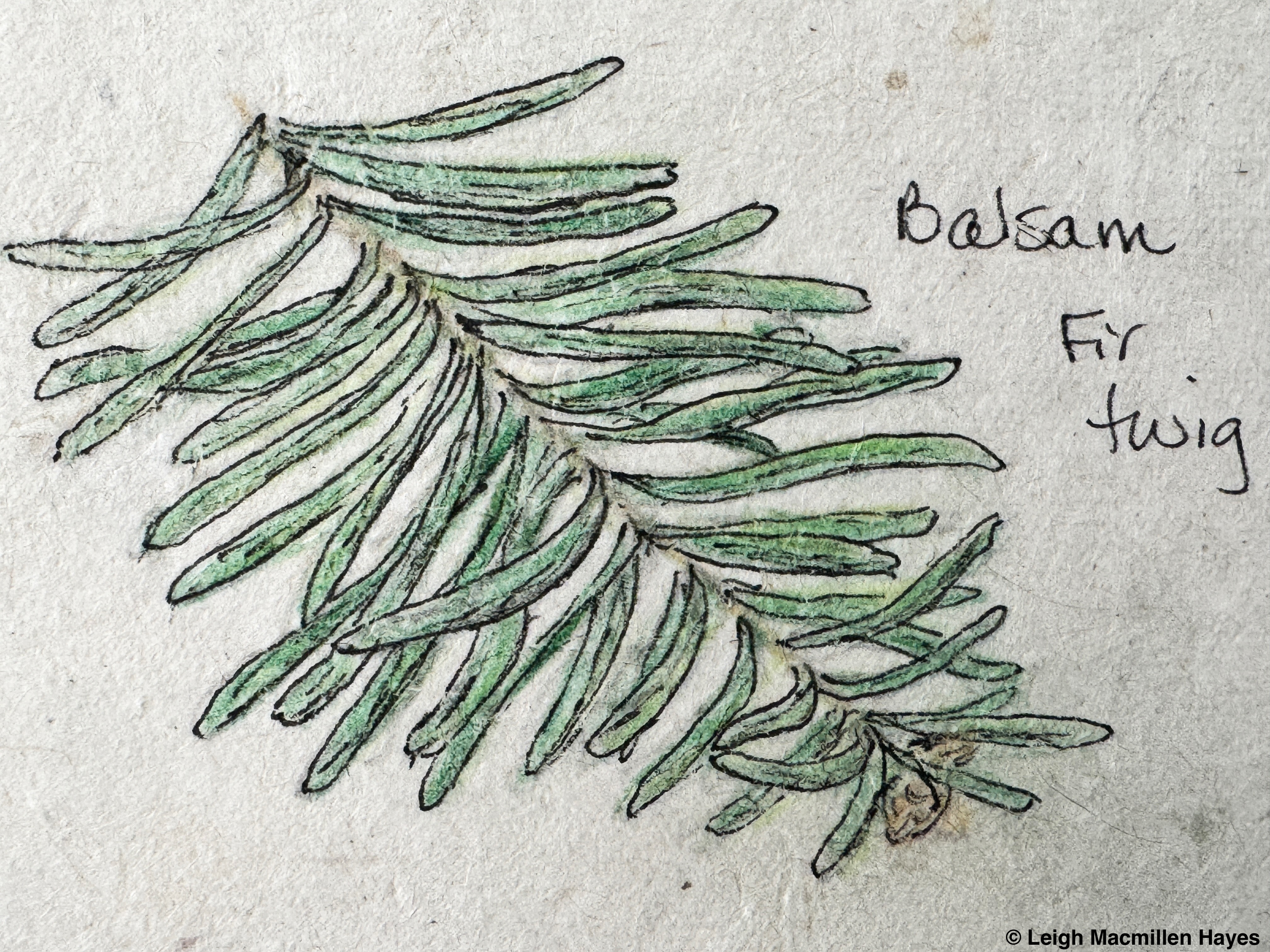 Being an evergreen, Balsam Fir have leaves (needles) that are always on them, though they lose some each year. And gain new ones, of course. If you were to remove all the needles, you’d find a smooth twig.