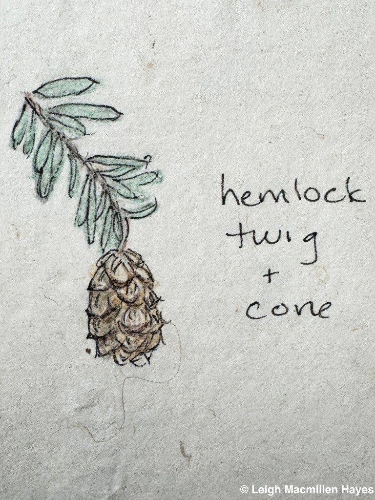 Hemlocks are like Yellow Birches, in that they need a moist area to set root and often grow on moss-covered rocks or tree stumps or nurse logs, so called because they are rotting trees that provide nurturing places for other things to take form.