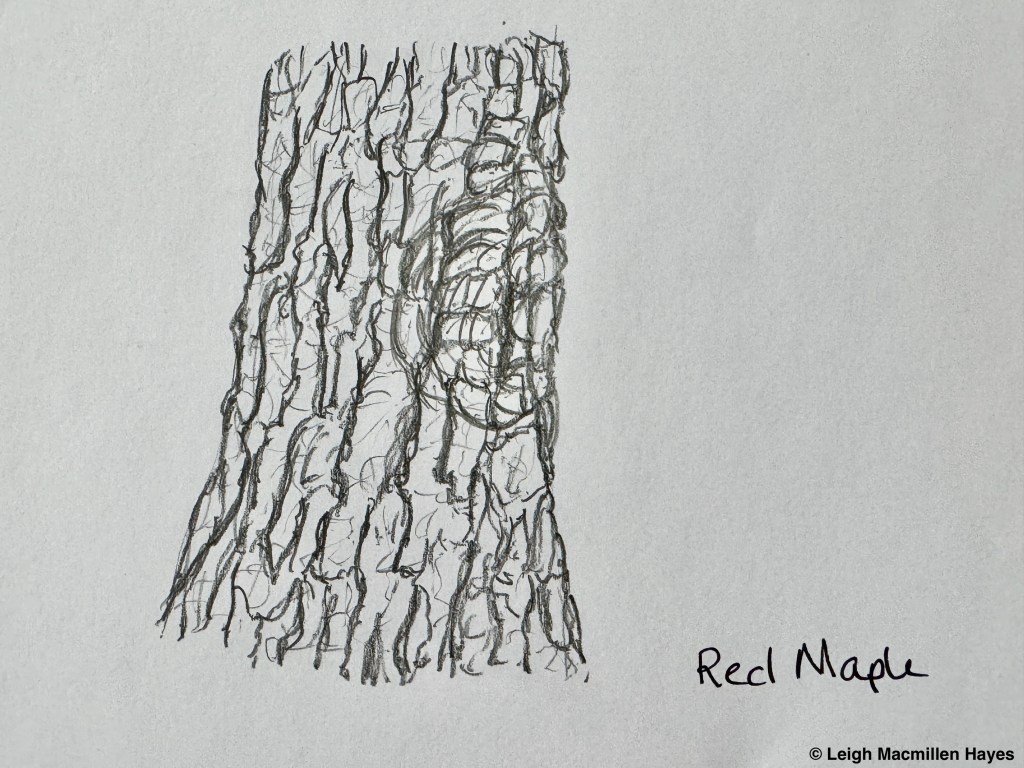Sometimes, it is difficult to determine if a maple is Red or Sugar, but one of the clues I look for is the Bull’s Eye target on the bark. There are several on this one, can you see the rounded patterns that aren’t completely formed? The target is formed as a reaction to a fungus.