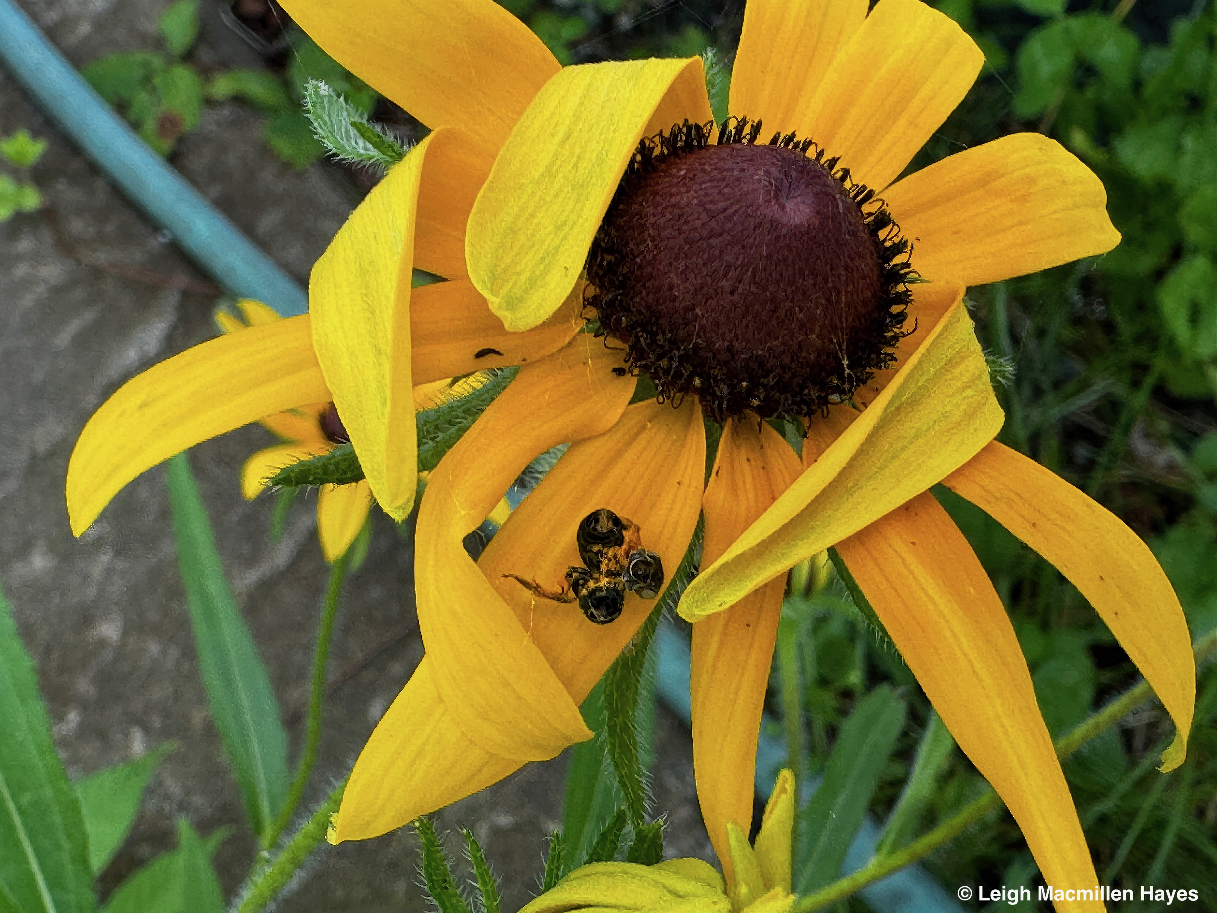 But, being teenagers, sometimes two decide to tango in the breakroom under the Goldenrod, and these two canoodlers just had to have a bite to eat while they were so engaged. I’m sure the Sweat Bee never saw this coming.