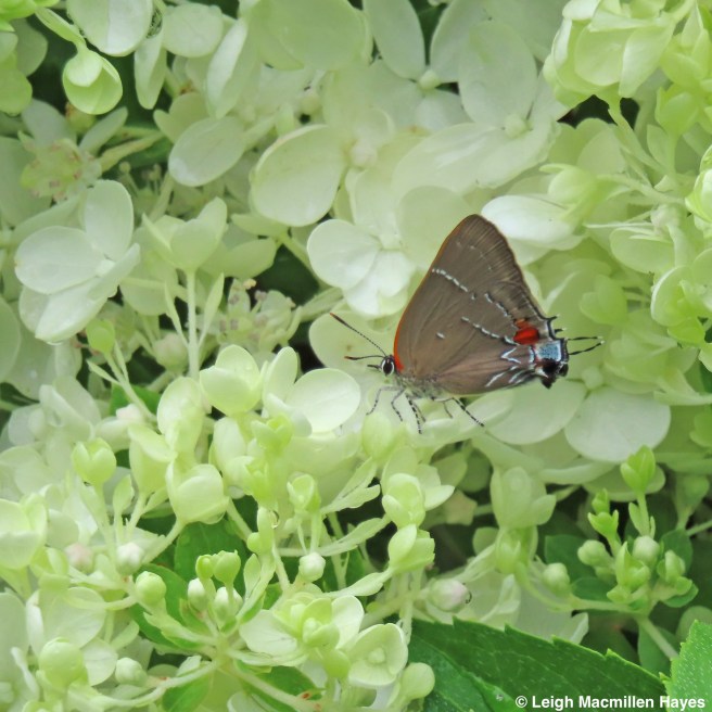But I’ve saved the best for last. For I spotted one more critter in the field, and when I got home, it was on the Hydrangea.