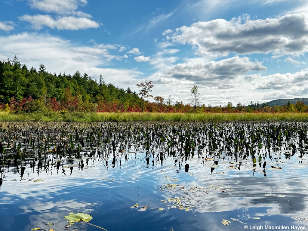 Looking back toward our house, with our neighbors’ woods to the left and ours to the right, it looks as though the Goldenrod goes on forever. Actually, there’s some Meadowsweet and a few Steeplebushes, and some other flowers in the mix, and ferns including Sensitive and Marsh and Royal and Interrupted, and mosses galore. But right now it’s the Goldenrod and Spirea (Meadowsweet and Steeplebush) that are attracting the pollinators.
