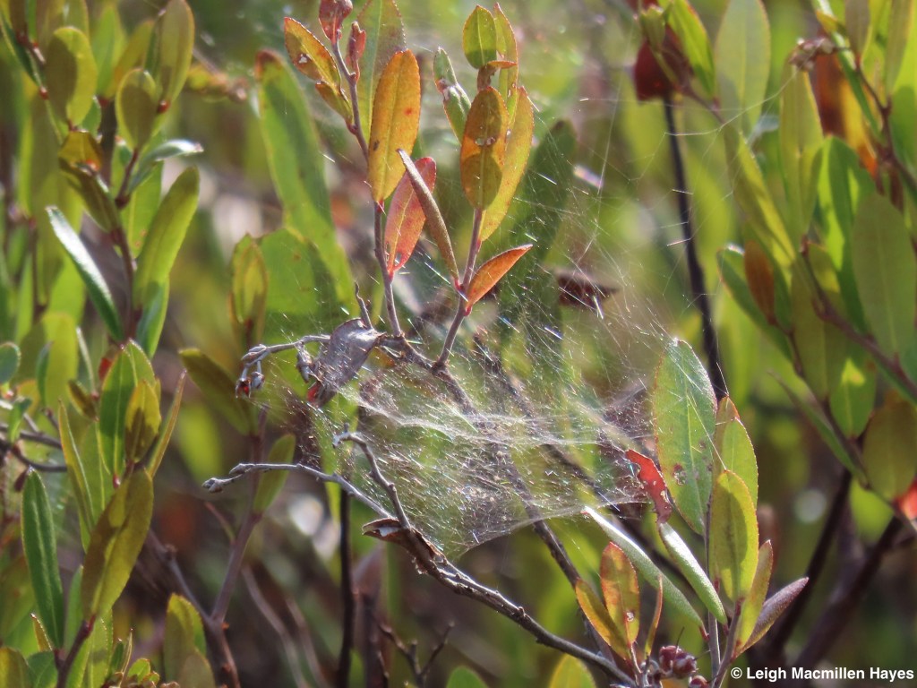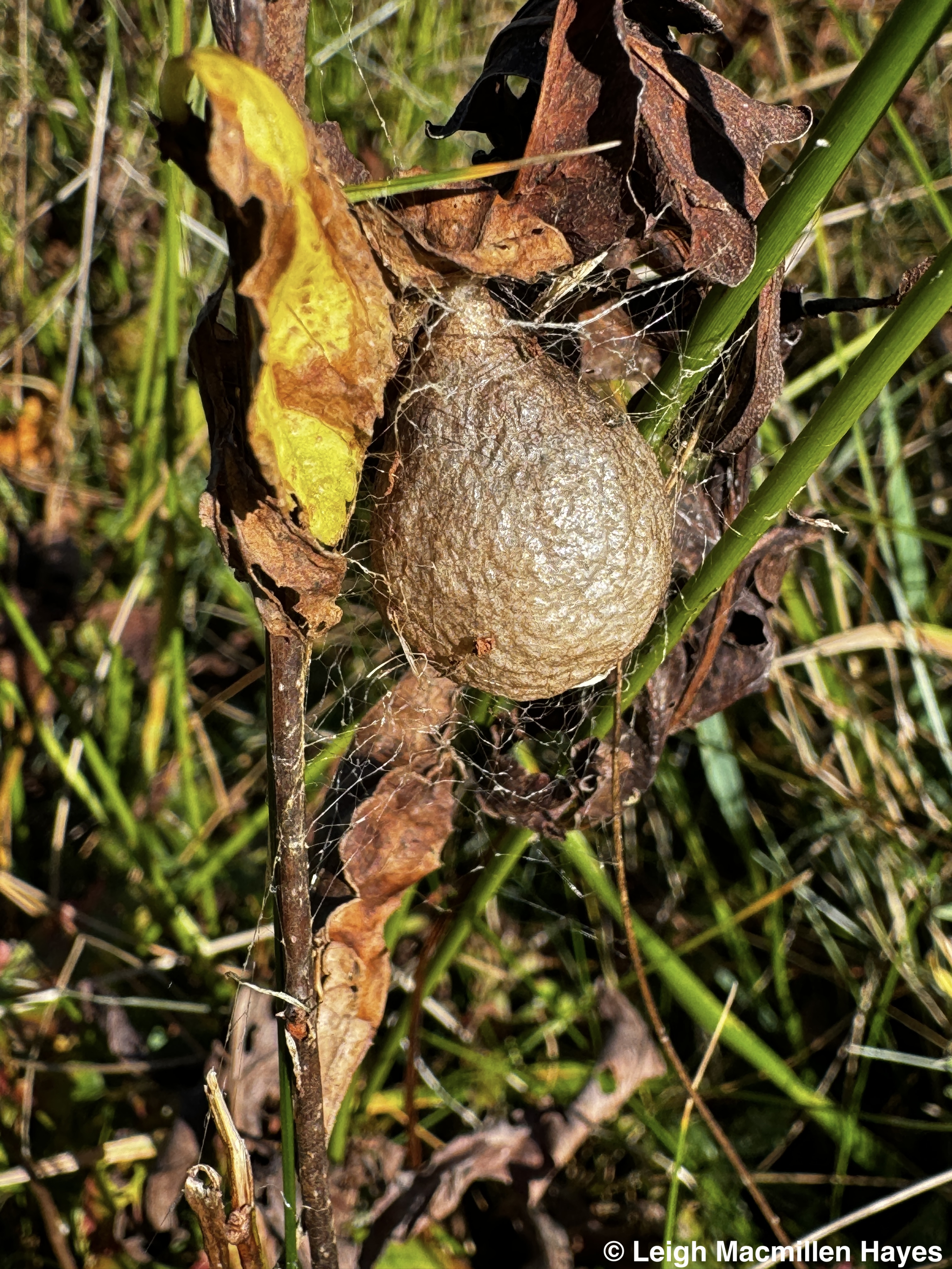 I did worry that as the fire trucks were driving up through the field last week, especially when they cut across to get to my location, they were destroying the spider webs. And they probably did. But what they were doing was way more important in that moment. And . . . the spiders have found some new locations in the spaces where the tires flattened plants.