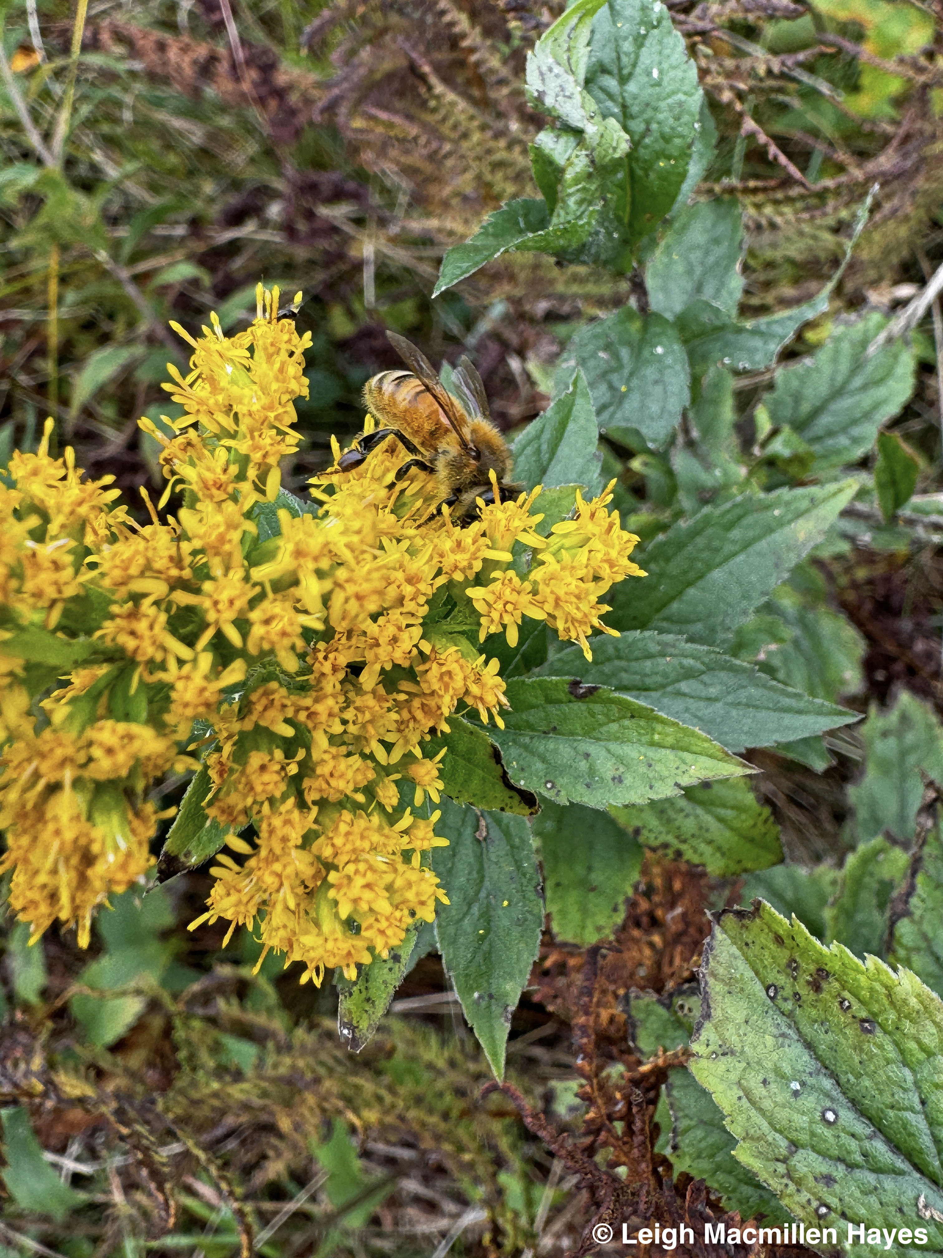 On another, a bee gathered not just the nectar that so many of the insects seemed to seek, but filled the sacs on its legs with pollen as well. Lots of pollen. It actually looked like two pollen sacs per leg to me.