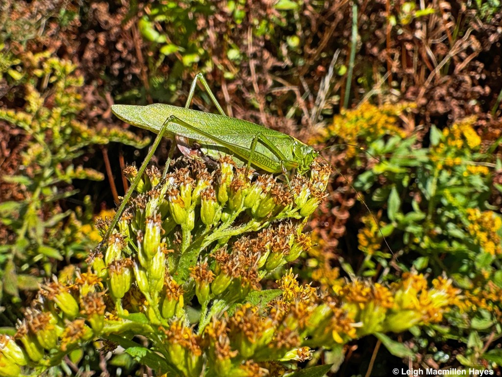 Though I occasionally meet a Katy-did around here, I think this past week was the first time I’d encountered a Broad-tipped Conehead! What a conehead it is!