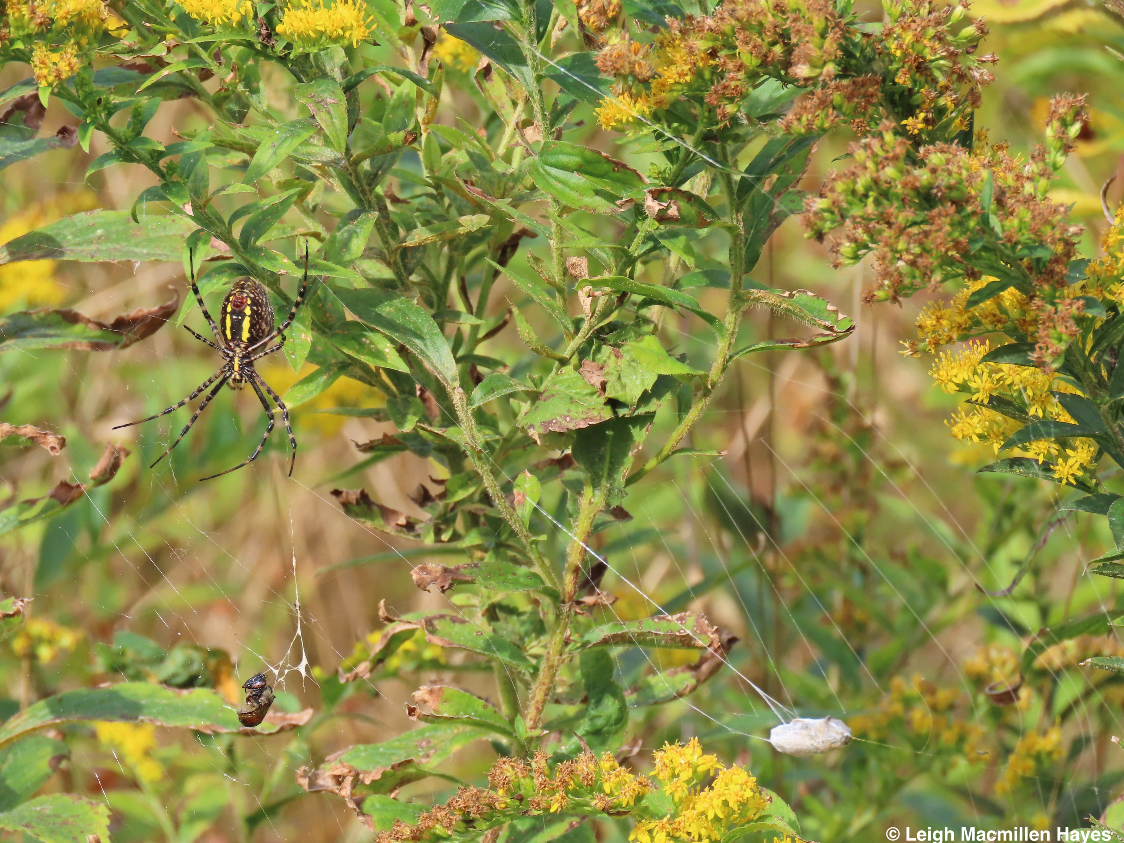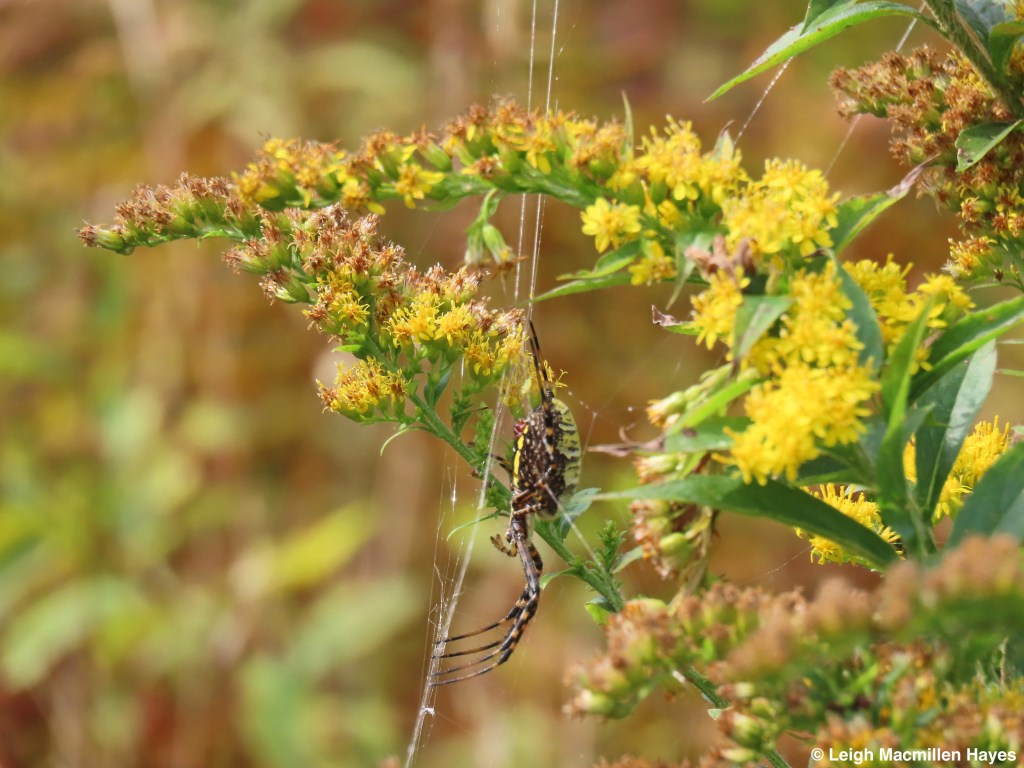 And indeed she was. Years ago, when I didn’t dare walk into the field because of ticks, I wrote a children’s story about kids coming upon these large Black and Yellow Garden Spiders as they ran through Goldenrod flowers. Of course, that was about 28 years ago and I was starring out the window at the same field I can now walk in.
