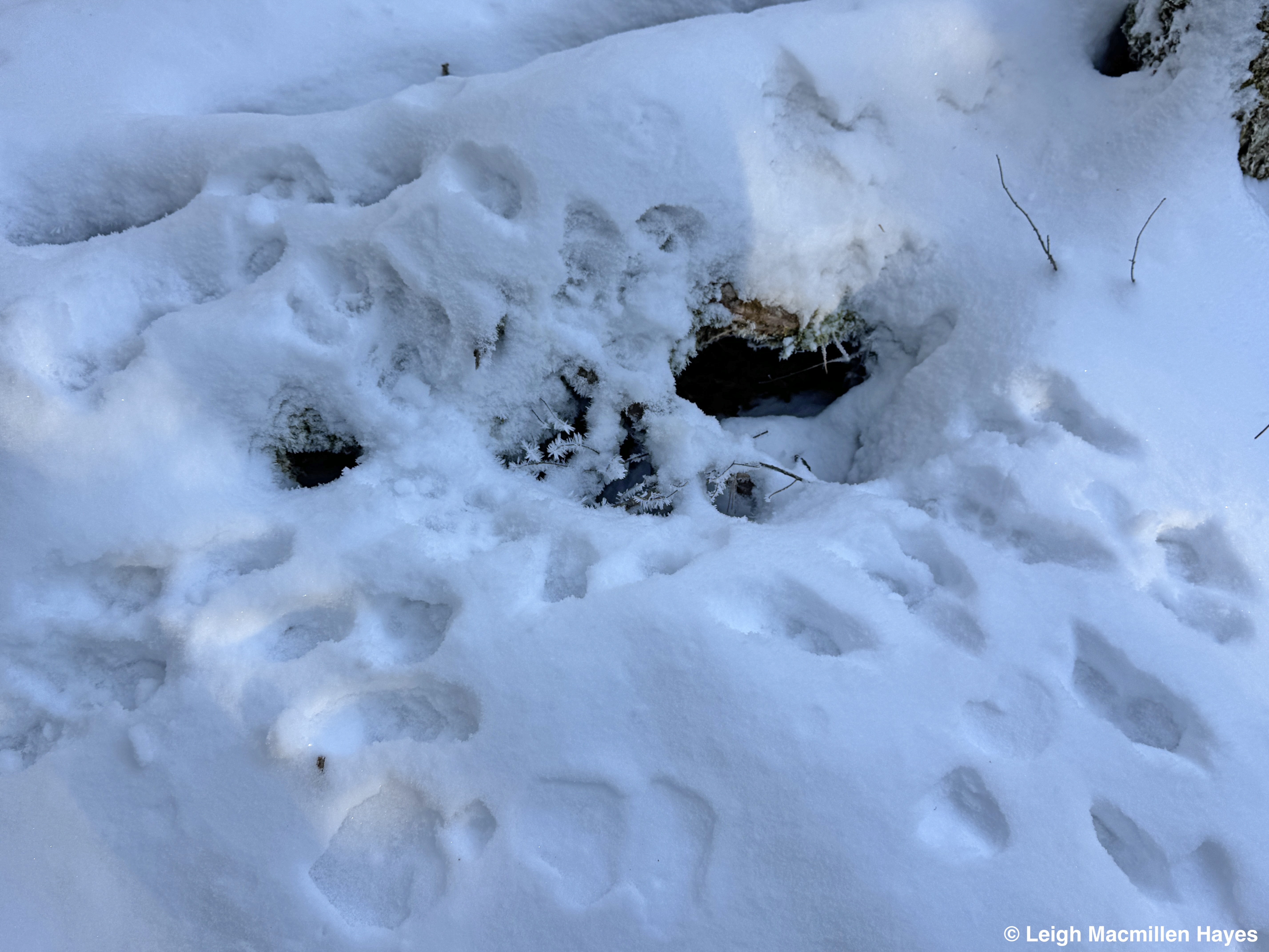 Why then, do all of this in the winter? Today’s temp was 21˚F, and the touch of snow even colder–I know this because I felt it several times as I placed my rulered card down for photo calls. Perhaps because there aren’t many predators at this time of year?