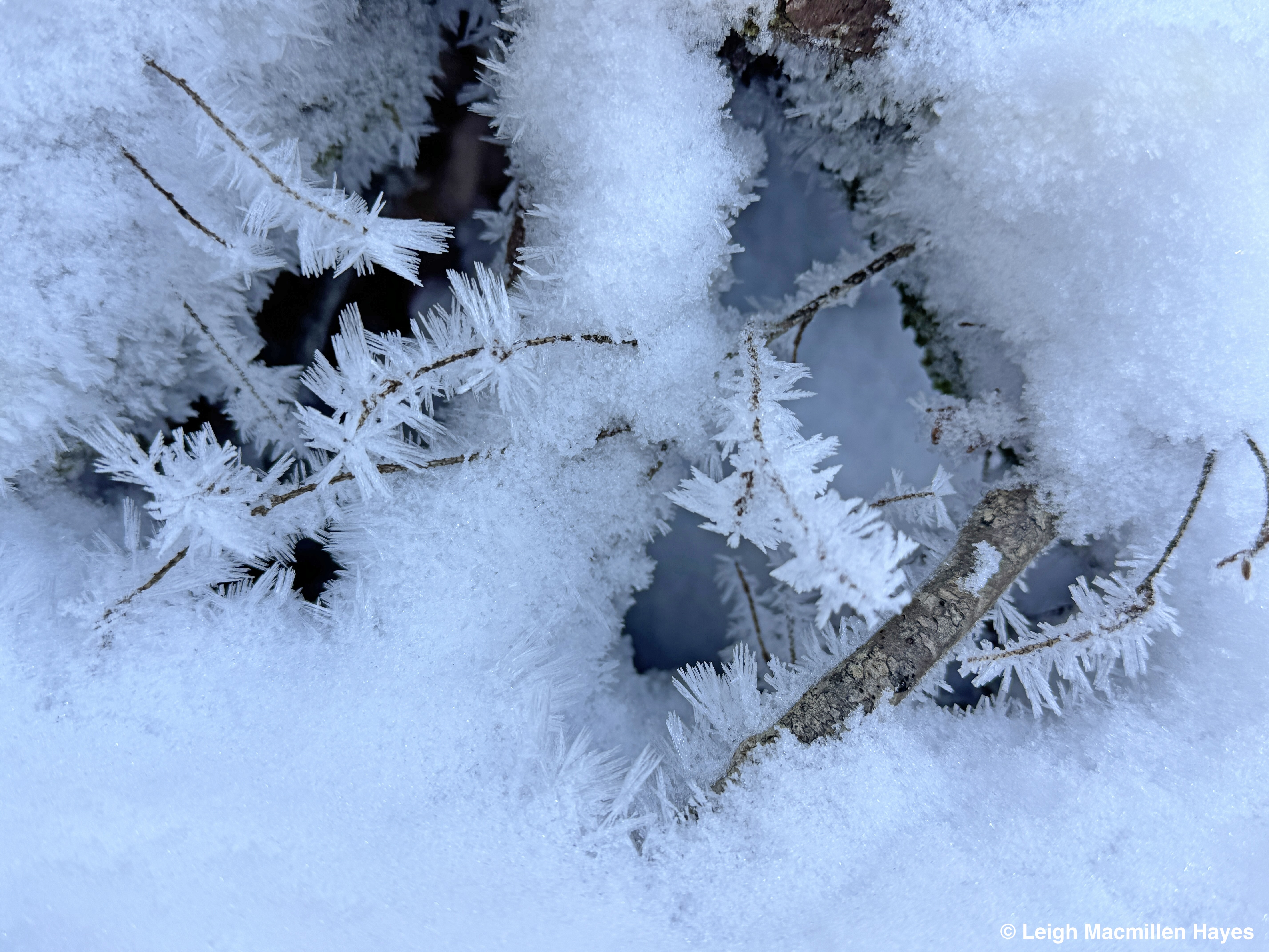 If you are so inclined to look down during a snowy tramp, don’t be fooled by some of the litter, such as Hemlock Needles with their short petioles, pretending to be green abdomens.