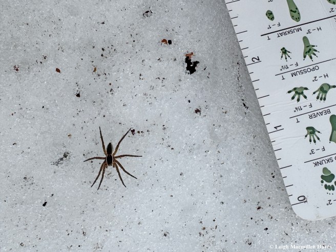 What I have learned over the past week or two is that those spiders who do venture across the snow will curl up and rest on the really frigid days, and come back to life when it warms up a wee bit. Amazing.