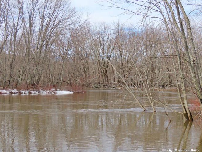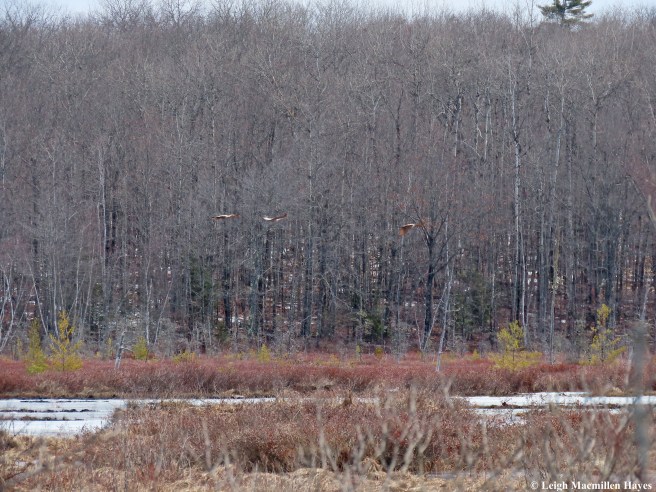 Actually, we were both on the phone with the Dispatcher, who was incredibly calm as she asked me to describe what I could see. The fire was on land belonging to another abutter to our south and about thirty feet in from the power line. From where I stood, it was difficult to get a sense of how large it was, but no way was I going in there to give a more accurate account.