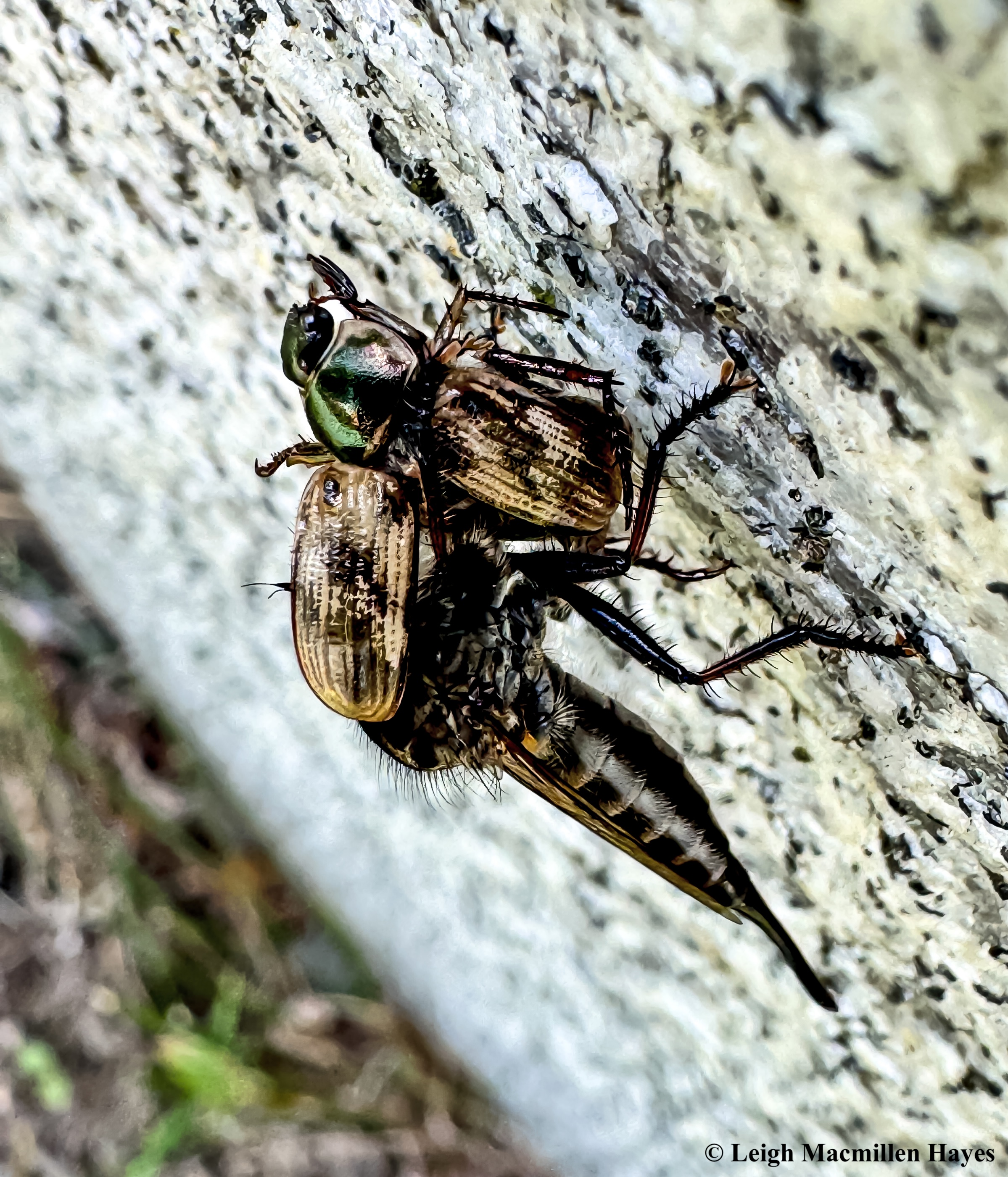 On another, a Bee Fly with its own incredible wing pattern. And those eyes. And hairy body. Oh my!