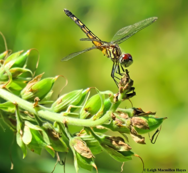 I had hoped to find a date for this male Calico Pennant Skimmer Dragonfly, her coloring would be all in yellow where his is red, but I’m afraid for the moment he’s still single. Maybe one day soon a gal will show up. I know I’ll keep looking.