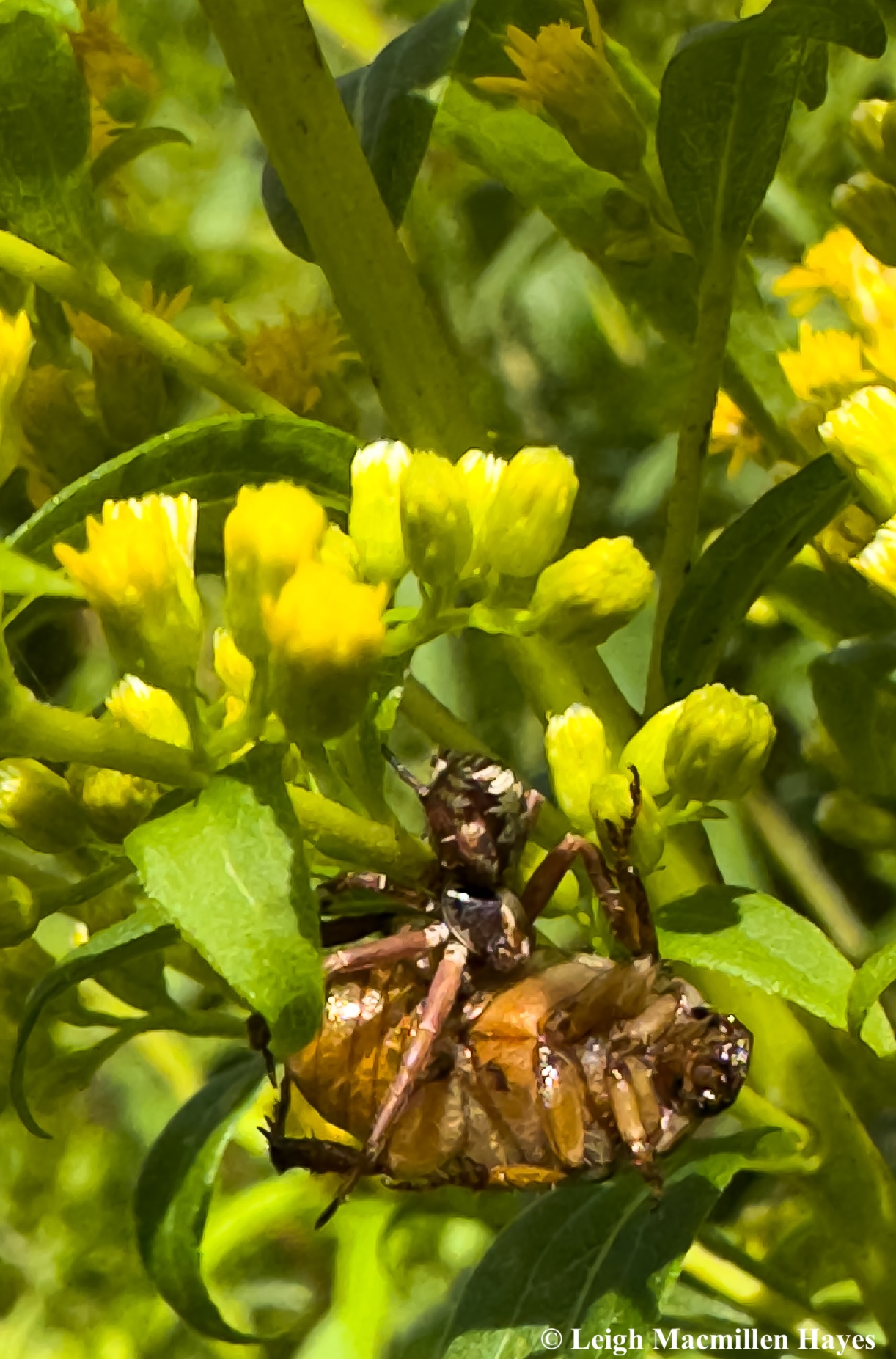 Believe it or not, the Jagged Ambush Bug can tack down an insect as large as a Bald-faced Hornet, such as this one. I haven’t witnessed it yet, but there’s still plenty of summer left.