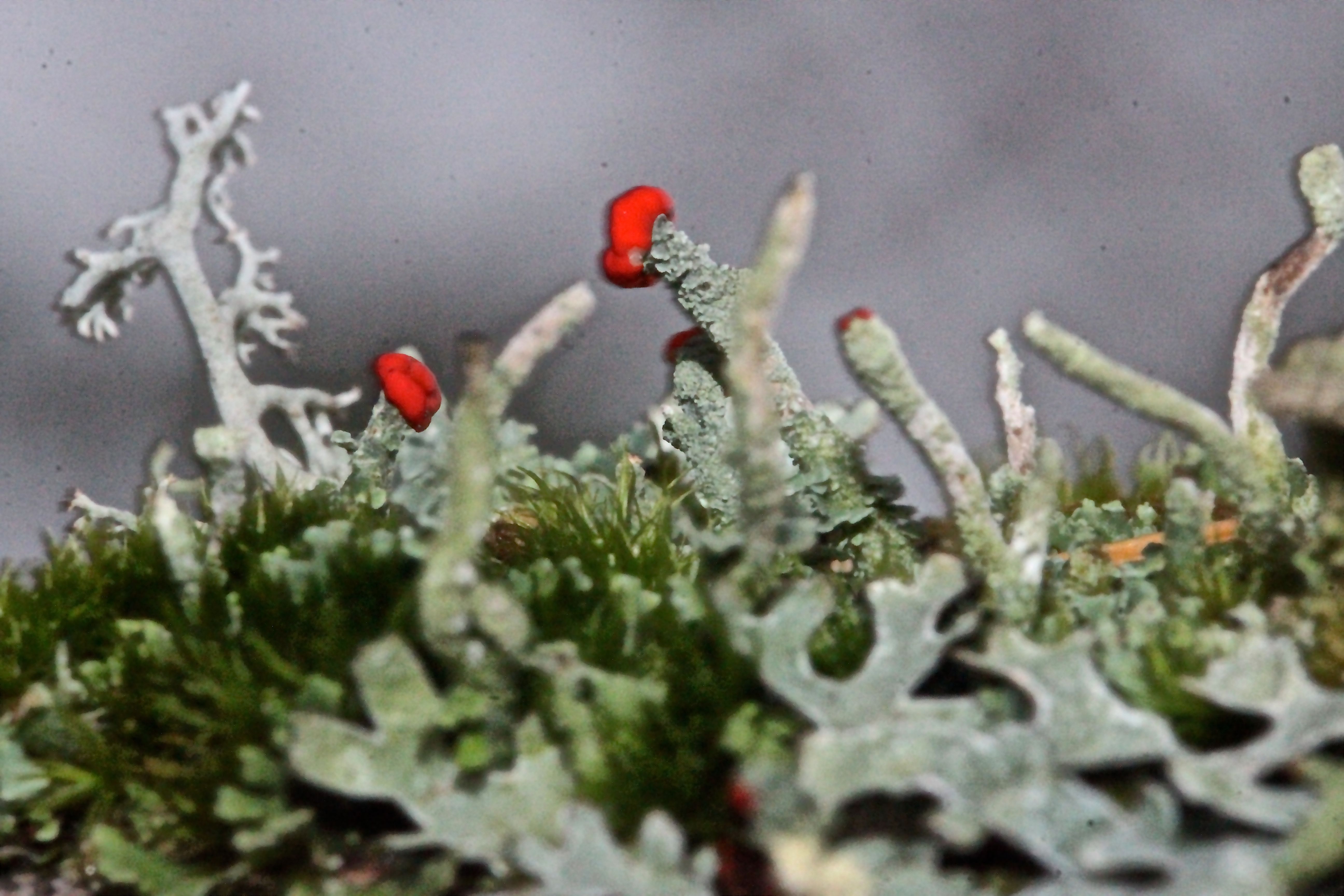 This miniature world resounds with a sign of its own: “Clean Air Here.” Lichens and mosses won’t grow were the air is polluted.