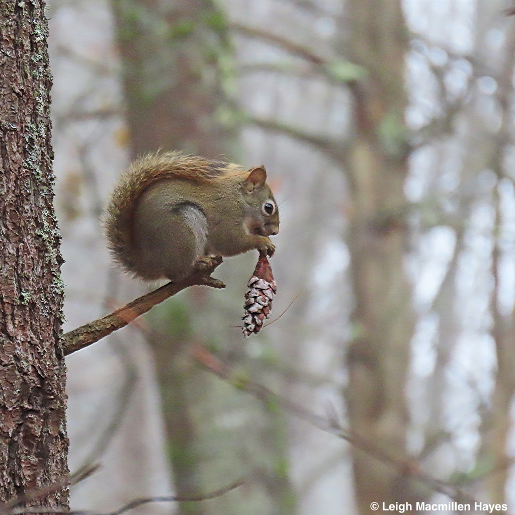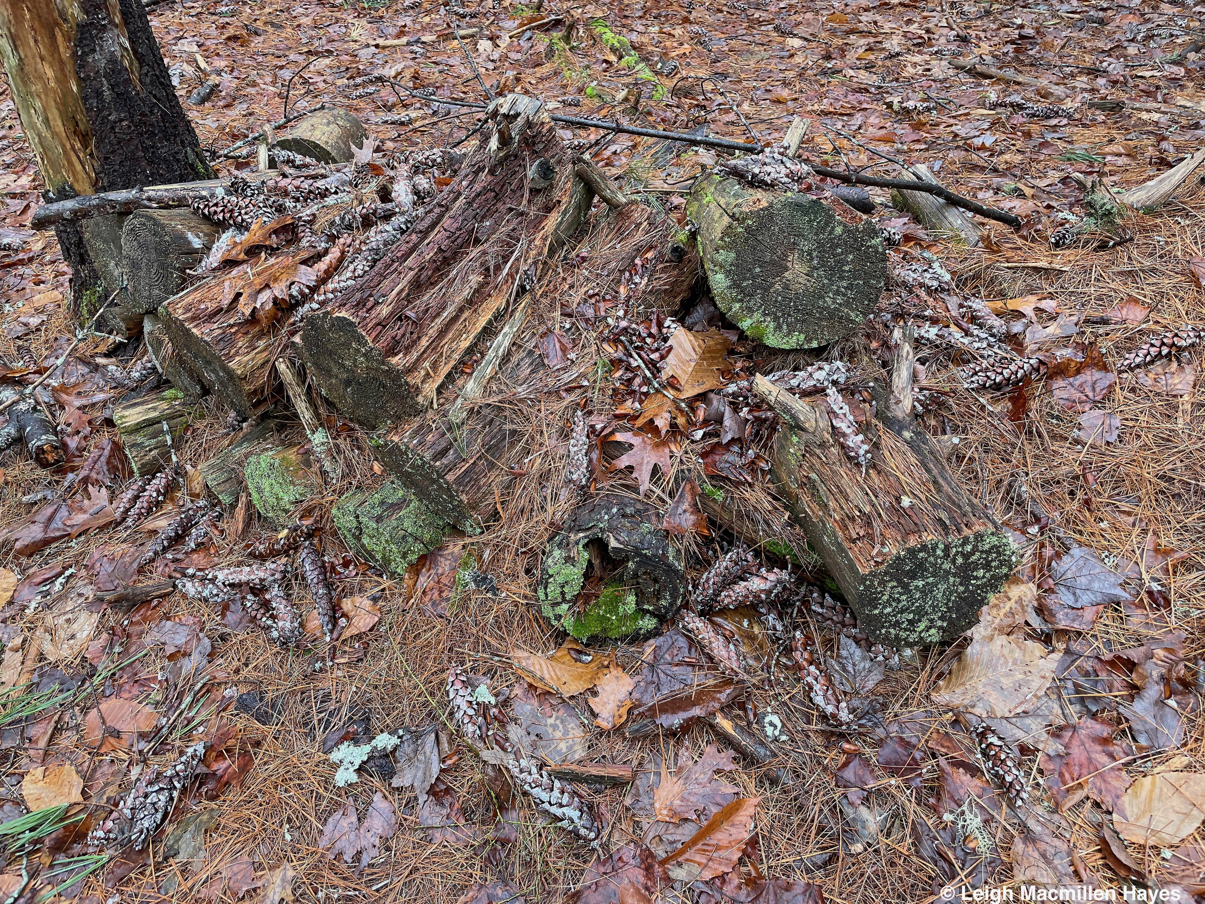 Our real mission today, however, was to explore the territory of a Red Squirrel. No, this is not my friend Red, but another who has established a territory in a different space that’s also been blessed with an abundant amount of pine cones this year.