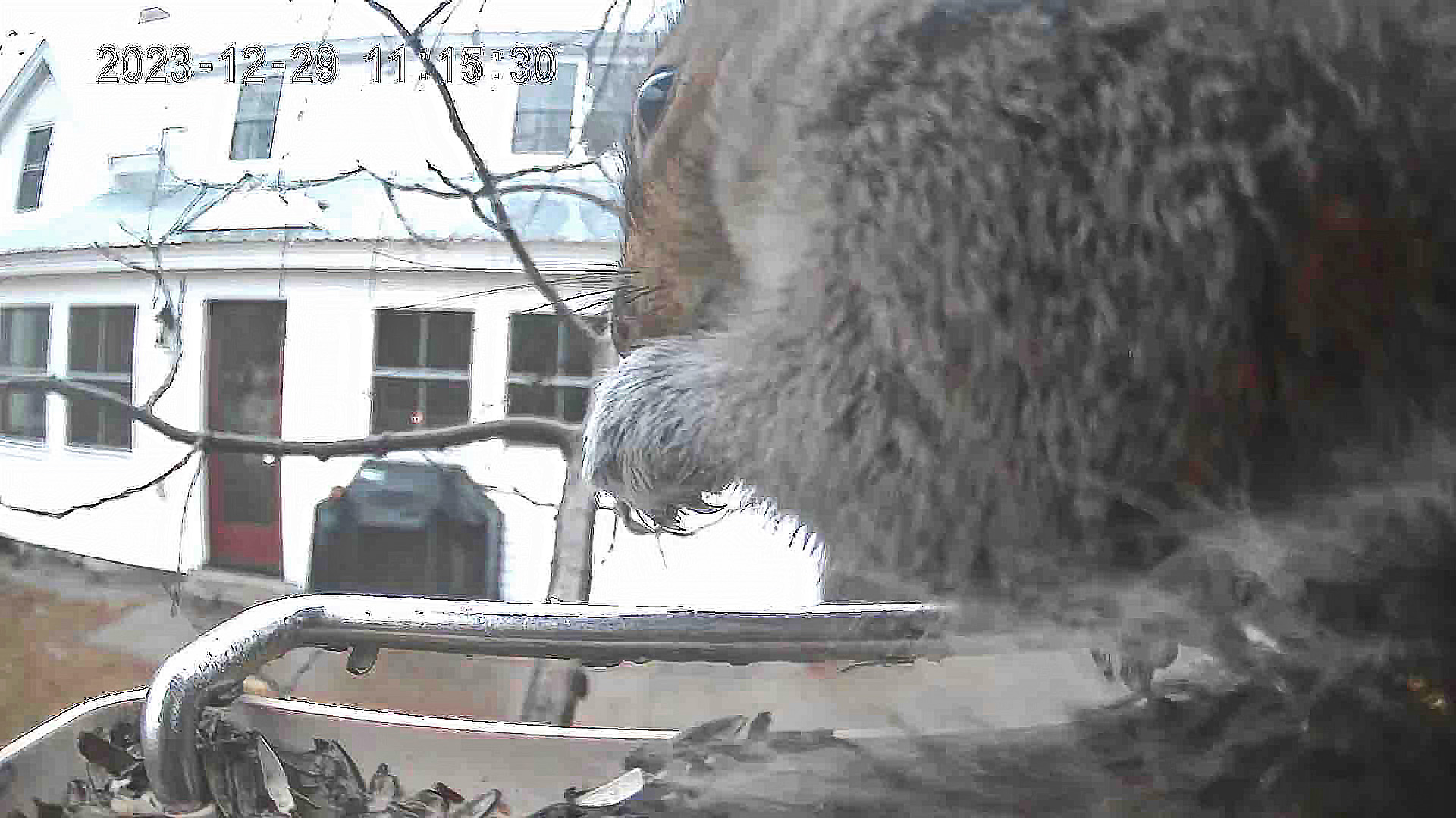 And like its relative on the other side, it took time to cache a bunch of cones and now feasts upon its supply.
