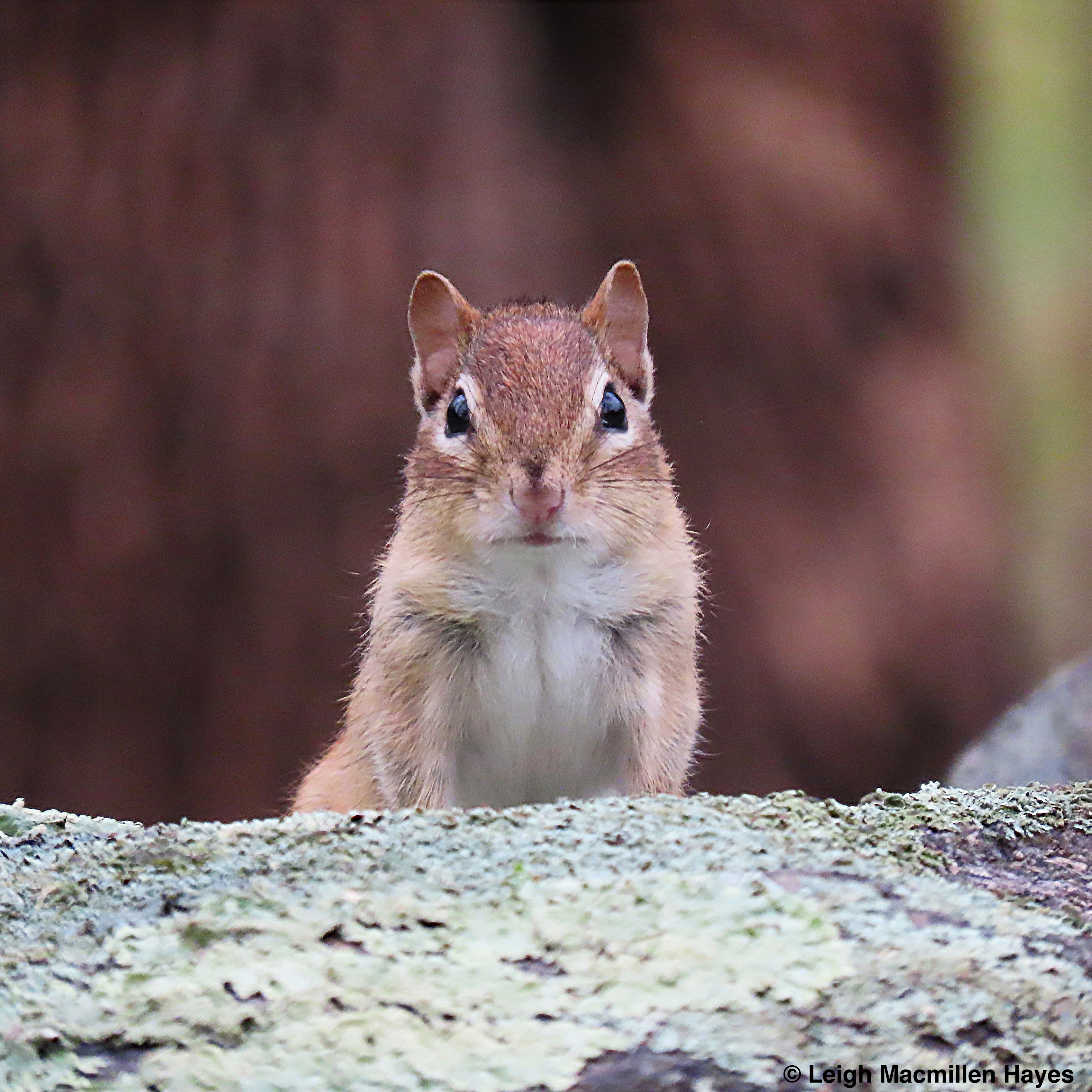 I decided to hang out not too far from the tree and barn as day turned to dusk in hopes of spotting Bandit emerging. Much to my surprise, an Eastern Chipmunk appeared on the wall behind the tree. Wait. What? Shouldn’t he be in torpor? Yup. But chipmunks will make an occasional appearance on warmer days and we’ve had way to many of them this year.