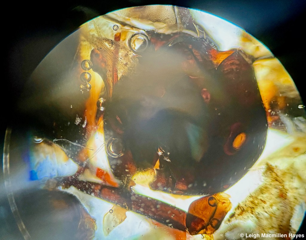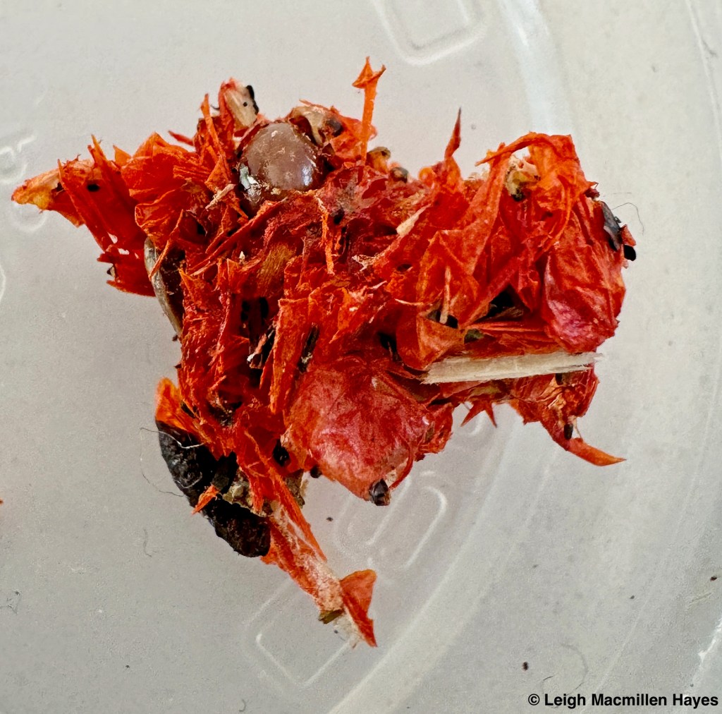 The sumac, being fleshier, held together better. Under the microscope I noted that there were some ant body parts mixed in with the sumac.
