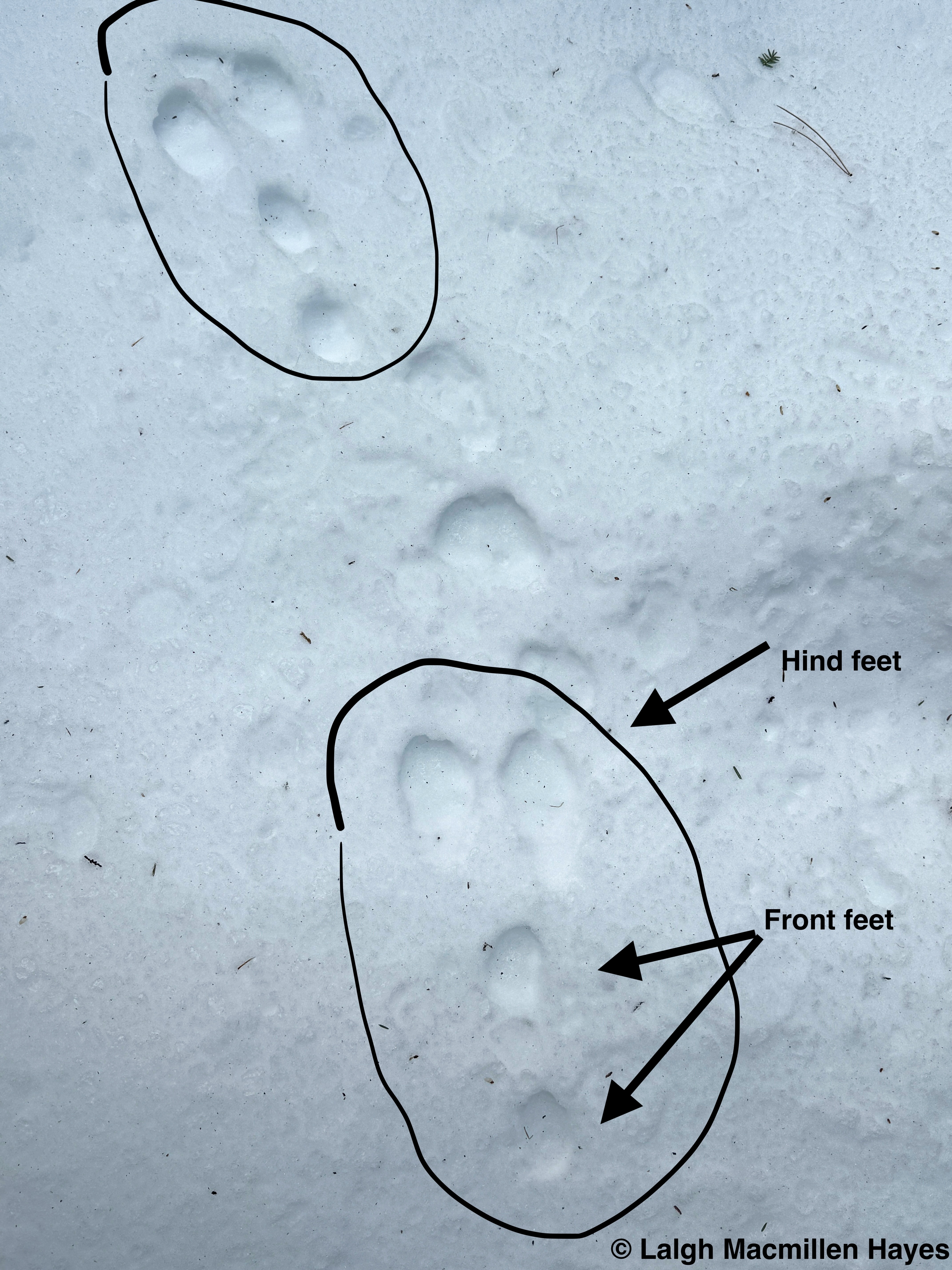 But early this morning, the snow turned out to be a tracker’s delight, for fresh tracks showed details providing names for the creators who passed this way.