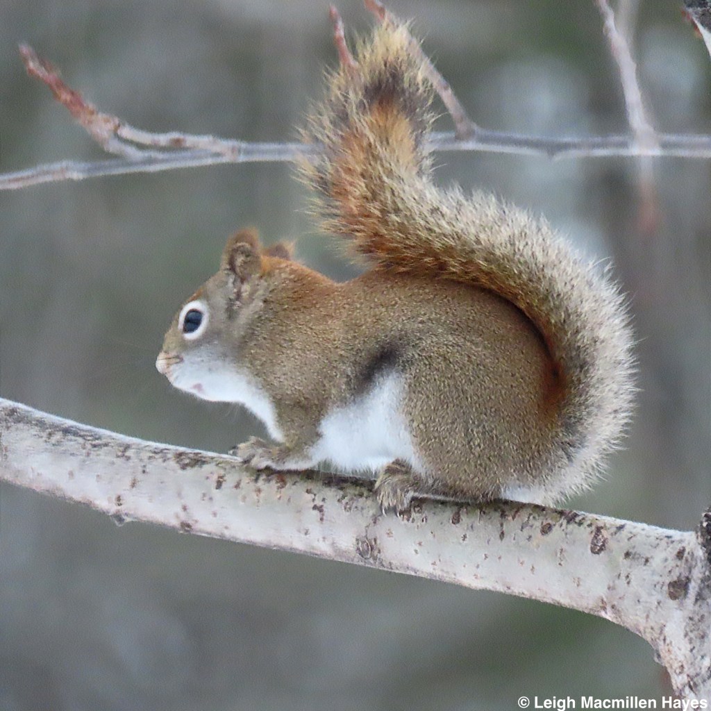 This neighborhood on the other side of the power line also supports a Red Squirrel who in true squirrel tradition travels this way and that.
