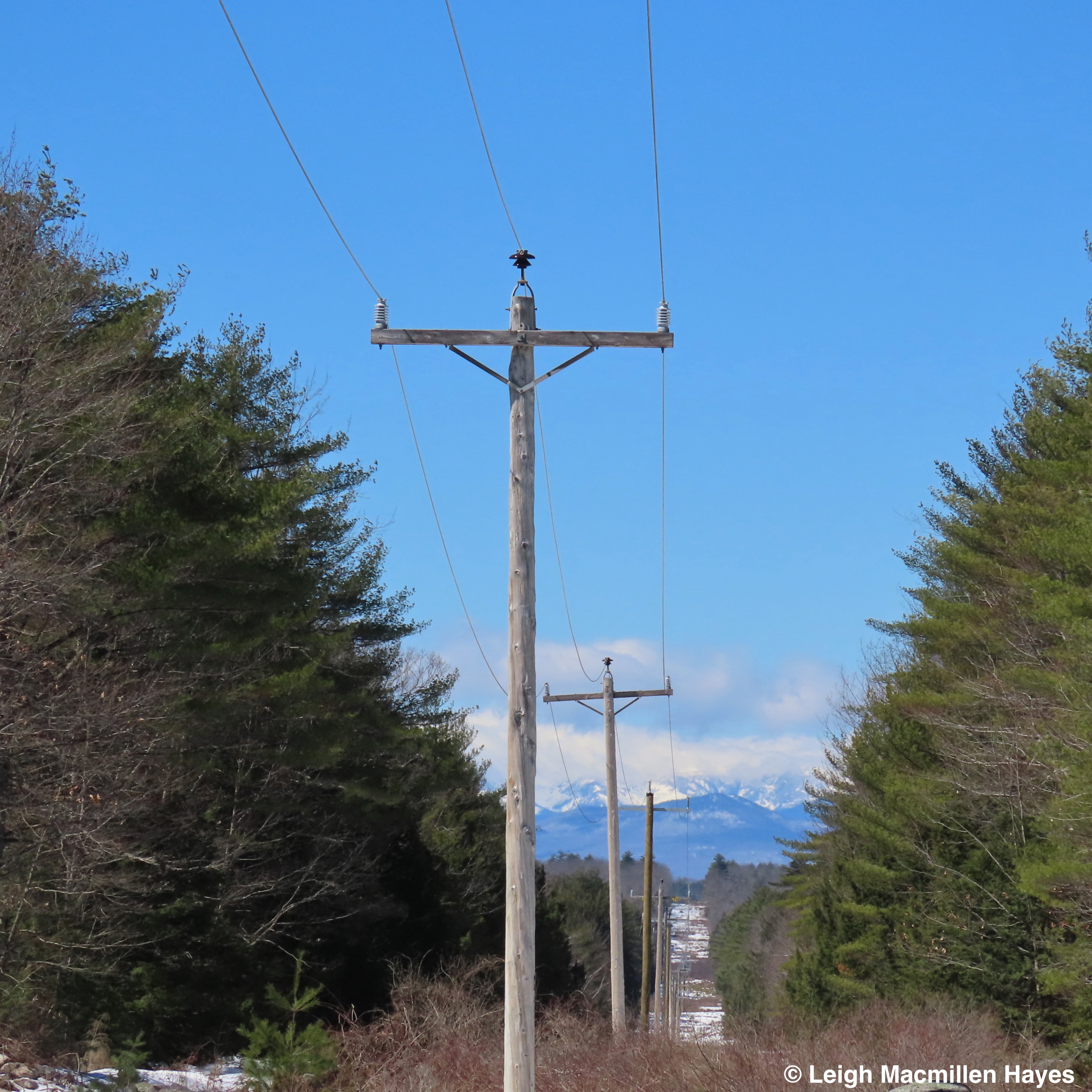 A power line bisects our property and I have a love/hate relationship with it. I do love that it looks like we could walk north to Mount Washington. But my destination was to the trees on the western (left-hand side), where we own at least one more acre enclosed by stone walls.